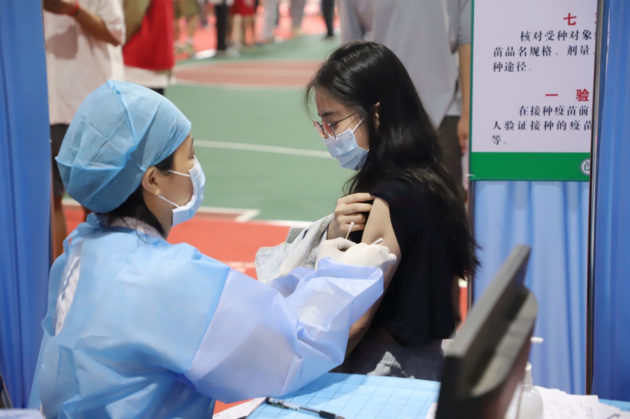 接種時,師生們在現(xiàn)場人員的指引下,有序排隊入場,經(jīng)體溫檢測、核對身份證、健康狀況咨詢、簽署知情同意書和做好查驗工作后,醫(yī)務人員開始給師生接種新冠病毒疫苗,接種后在留觀區(qū)觀察30分鐘,沒有任何不適方可按指示離場。