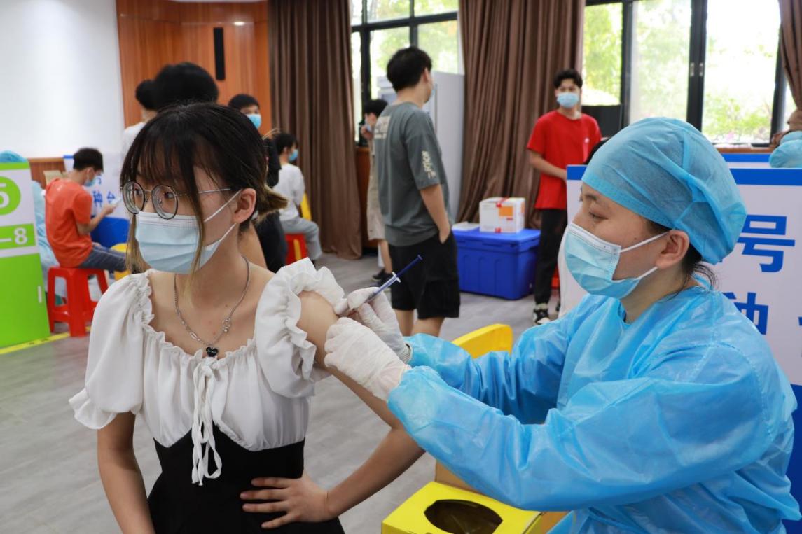 醫(yī)務人員為學生接種新冠疫苗