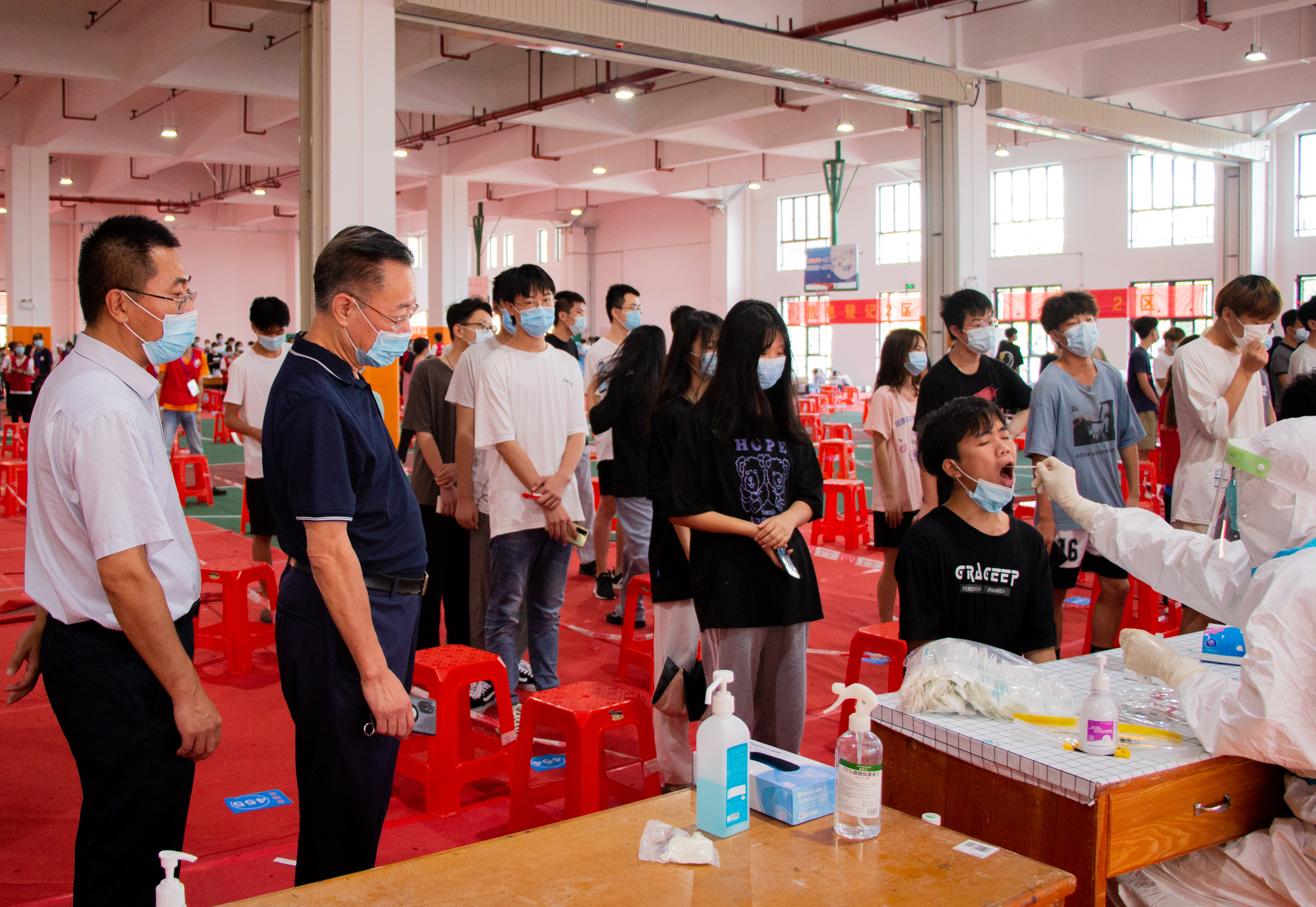 6月5日下午,黨委書記林偉健等校領(lǐng)導(dǎo)第一時(shí)間到達(dá)現(xiàn)場(chǎng)指導(dǎo),全程跟進(jìn)核酸檢測(cè)工作,看望慰問醫(yī)護(hù)人員和工作人員,希望大家在做好自我保護(hù)的同時(shí)努力工作,齊心協(xié)力完成好全員檢測(cè)。