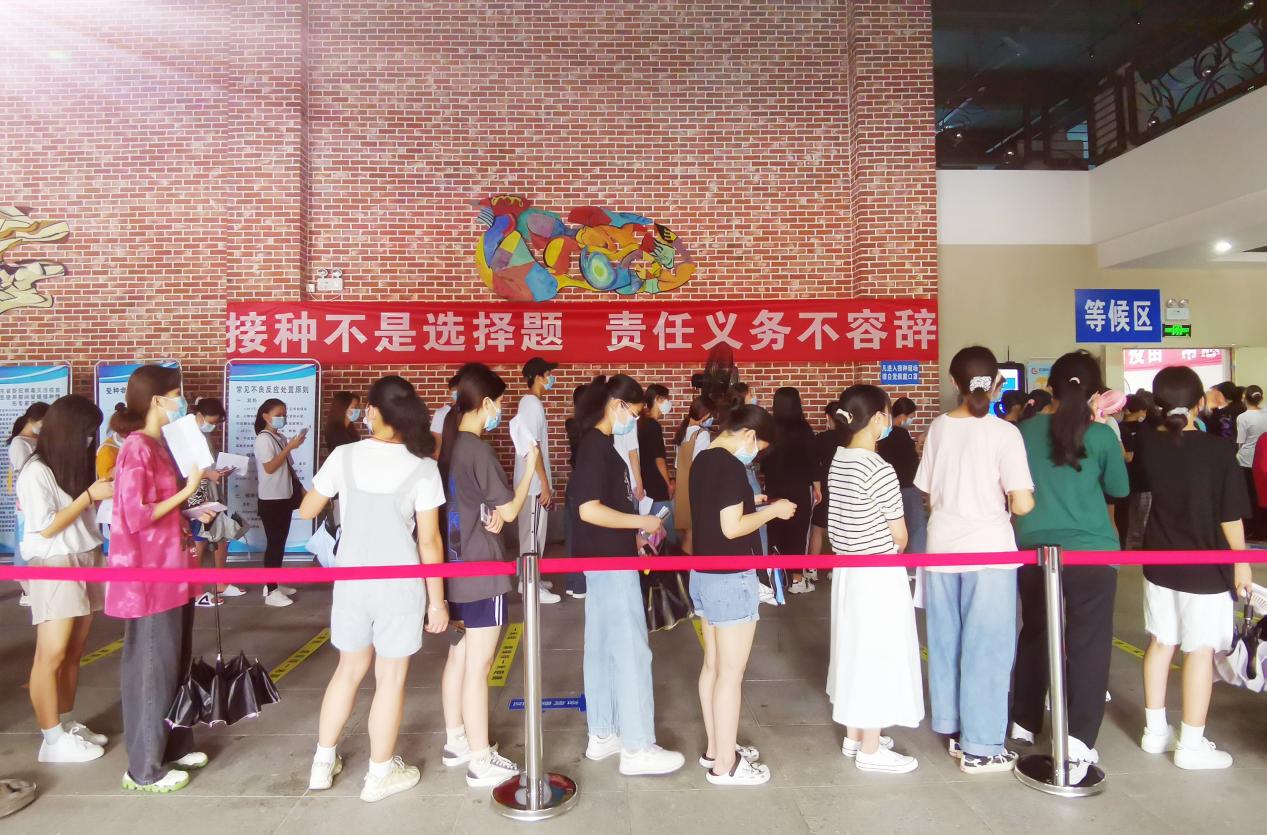 校區(qū)師生員工有序排隊(duì)等候接種疫苗