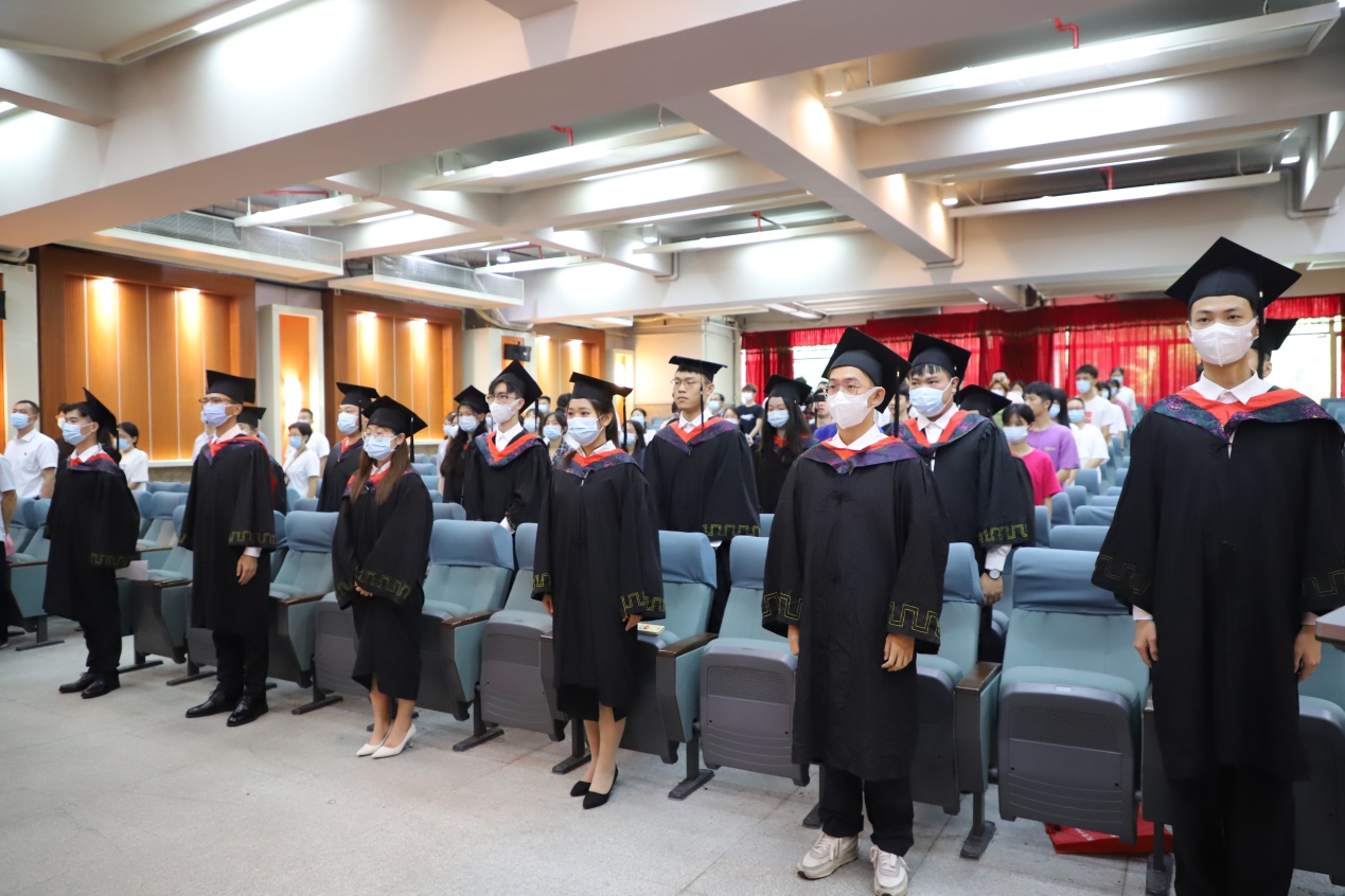 畢業(yè)典禮在雄壯的國歌聲中拉開帷幕。
