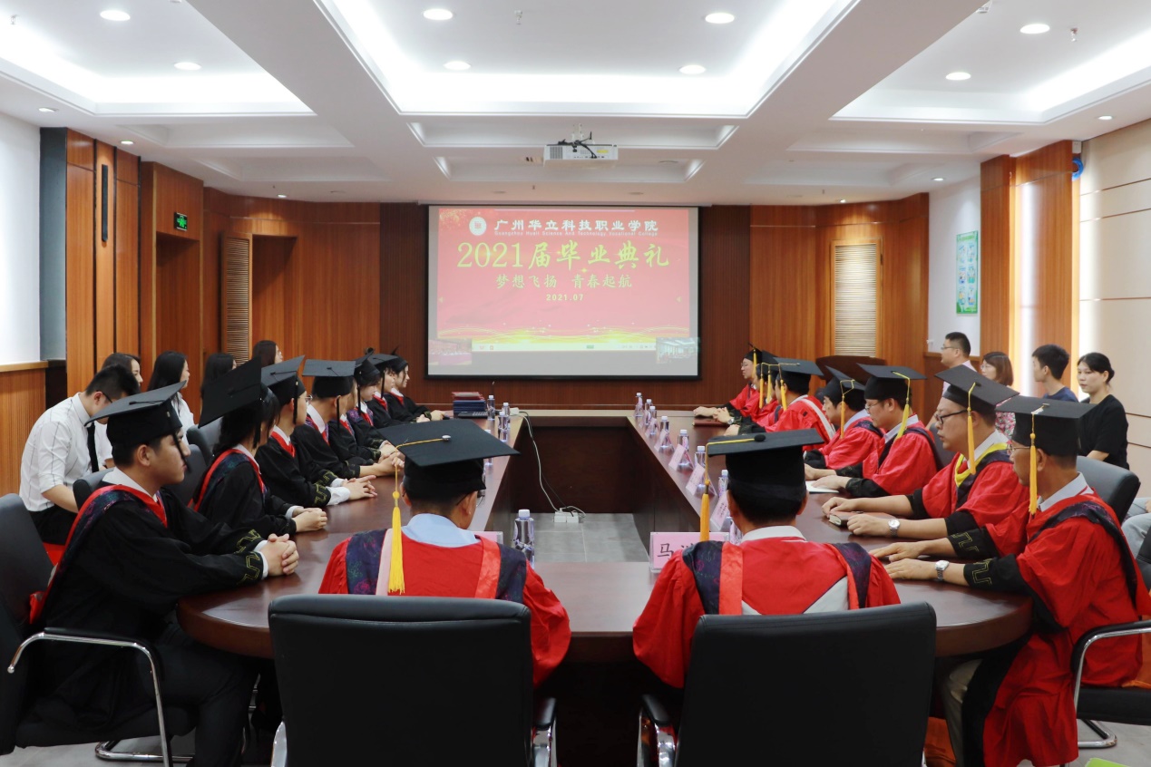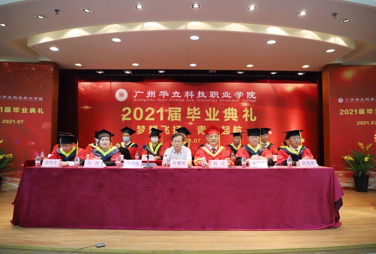 7月2日上午10點,廣州華立科技職業(yè)學院隆重舉行以“夢想飛揚 青春起航”為主題的2021屆畢業(yè)生畢業(yè)典禮,3967名畢業(yè)生順利完成學業(yè),踏上新的人生征程。受疫情影響,學校通過線上線下的互動,廣州校區(qū)與云浮校區(qū)連線,讓身處各地的畢業(yè)生共同見證屬于2021屆畢業(yè)生的畢業(yè)盛典,讓青春不留遺憾!華立投資公司葉雅明總經(jīng)理,校長劉莊,執(zhí)行校長馬龍海,黨委書記林偉健,副校長黃樂覽、馬俊、易健民、高堯來,校長助理王洪艷、郭仲先,各二級學院院長、職能處室代表、各二級學院學管主任、黨支部書記、畢業(yè)班輔導員和相關工作人員以及2021屆畢業(yè)生代表出席了畢業(yè)典禮,其余畢業(yè)生通過收看直播并開展線上互動的方式參加了云上畢業(yè)典禮。畢業(yè)典禮由執(zhí)行校長馬龍海主持。