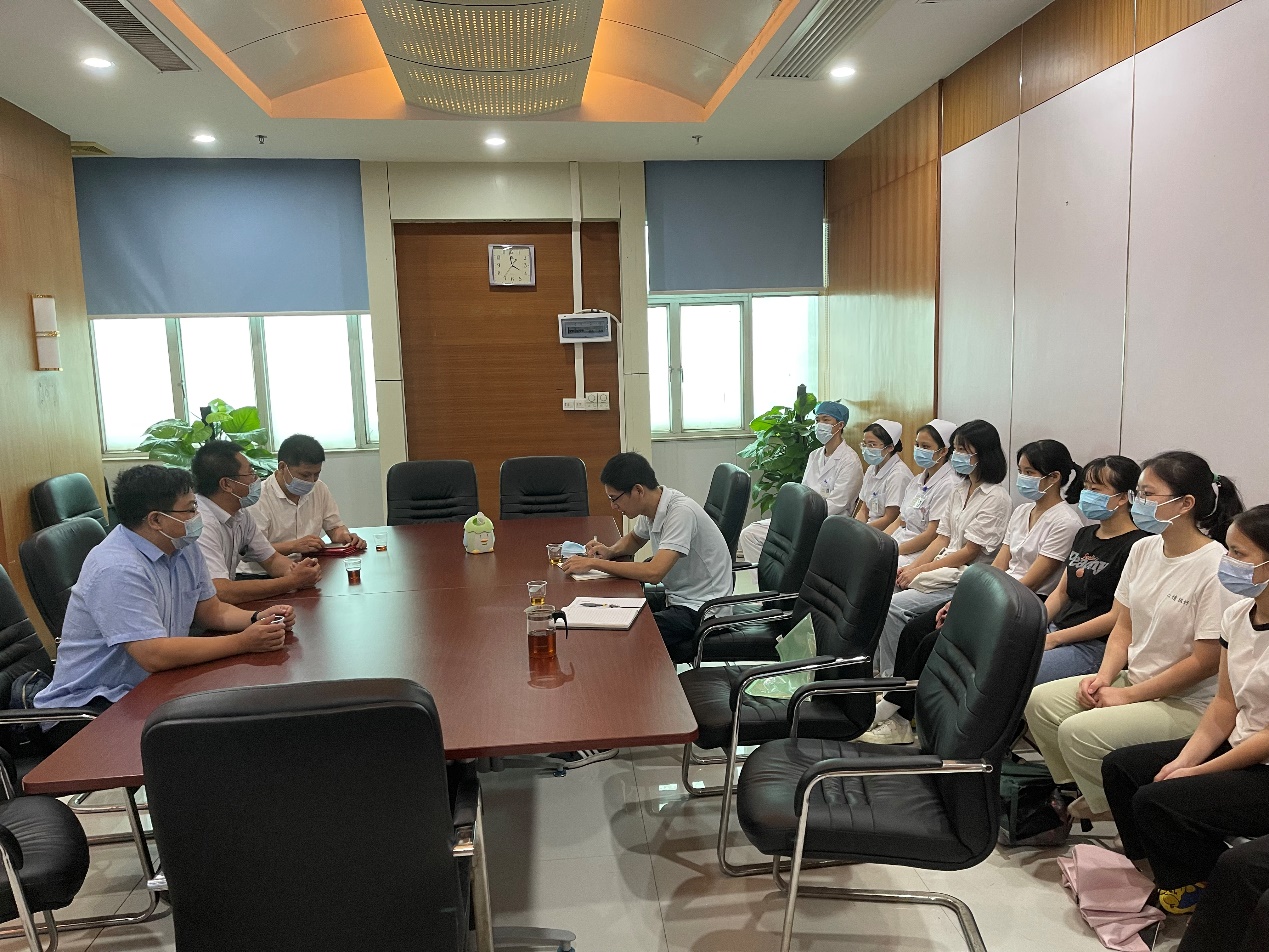 在座談會上,19級護理實習生代表方妙莉、鄺炳炎、王怡琪分別對實習輪崗、專業(yè)學習、安全等方面做了發(fā)言。高堯來認真聽取了大家的發(fā)言,希望14位實習生為學弟學妹做好表率,不斷提高護理專業(yè)能力和水平。