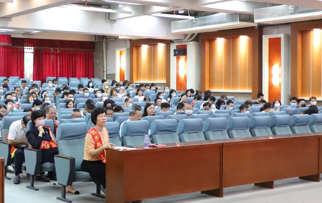 在莊嚴的國歌聲中,表彰大會暨師德建設主題教育月拉開帷幕。