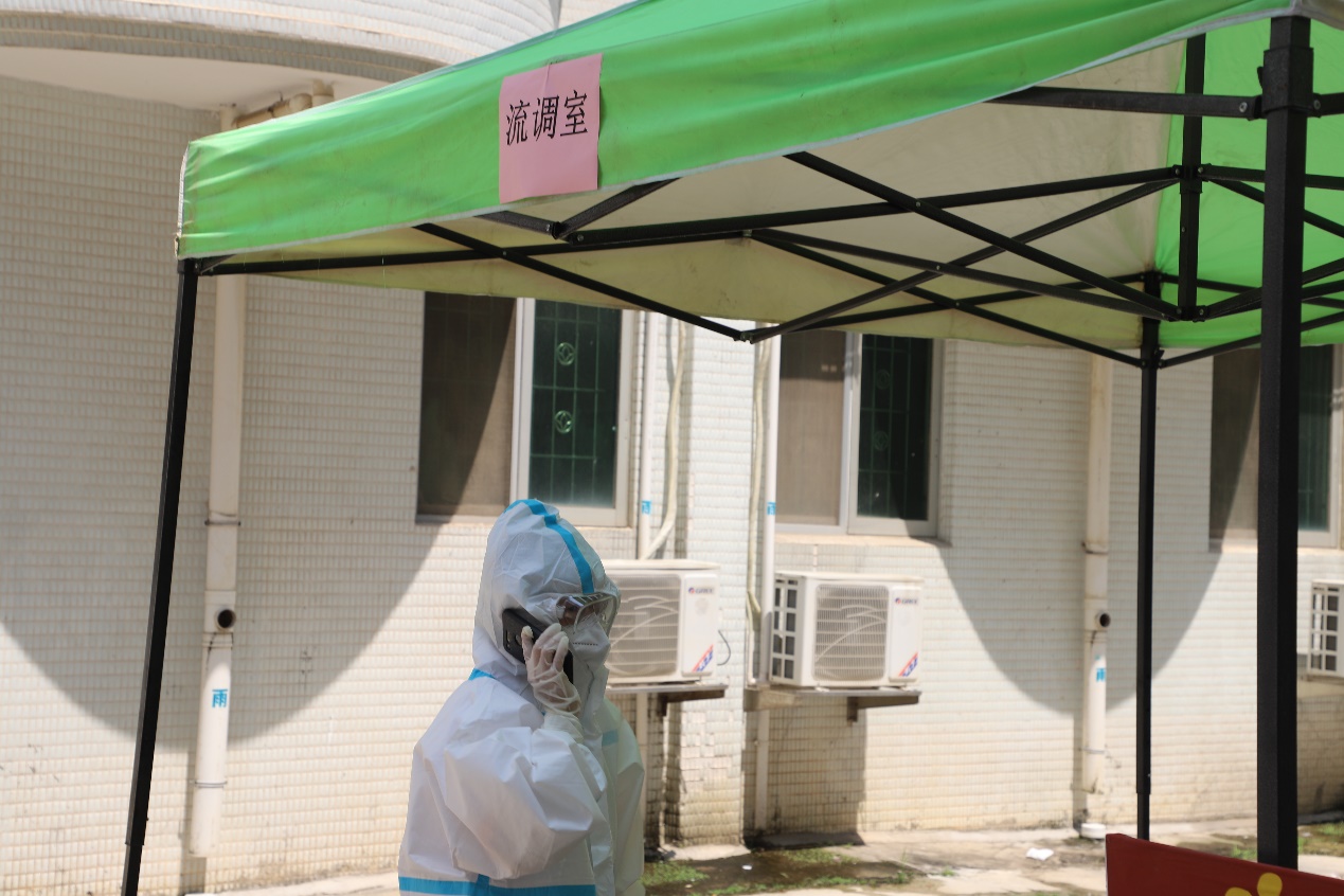 疑似陽(yáng)性病例轉(zhuǎn)移到流調(diào)室等待下一步處置