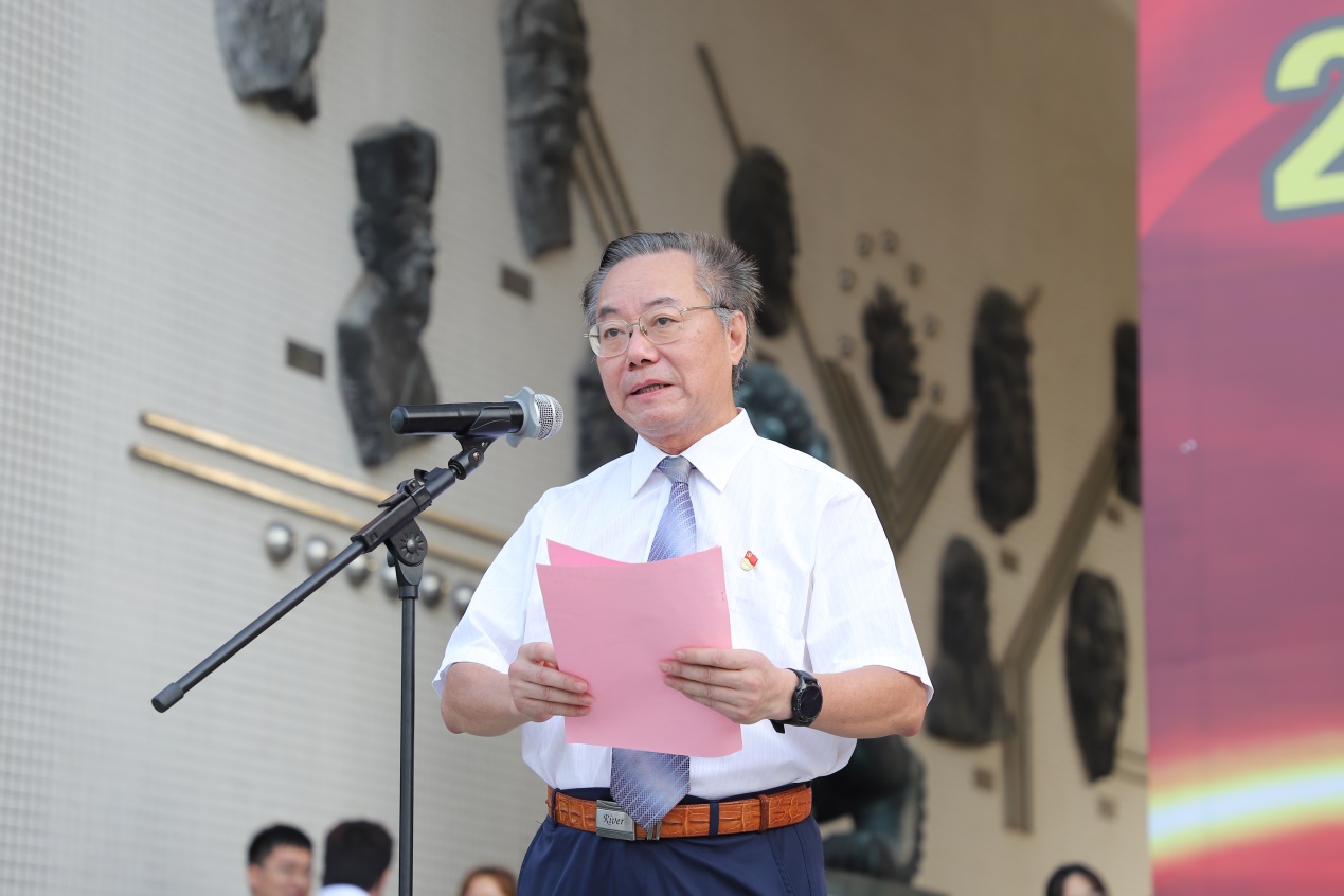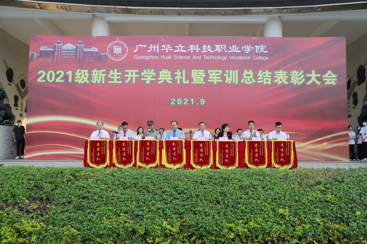 金秋九月,是收獲的季節(jié),也是迎新的季節(jié)!清晨,當(dāng)陽光透過樓宇,灑在綜合樓廣場(chǎng)上,2021級(jí)新生匯聚一起,懷著興奮、激動(dòng)的心情迎接他們大學(xué)生涯的第一個(gè)重要時(shí)刻——新生開學(xué)典禮暨軍訓(xùn)表彰大會(huì)。9月18日上午,廣州華立科技職業(yè)學(xué)院2021級(jí)新生開學(xué)典禮暨軍訓(xùn)表彰大會(huì)在廣州校區(qū)和云浮校區(qū)同時(shí)舉行。學(xué)校執(zhí)行校長(zhǎng)馬龍海,黨委書記林偉健,副校長(zhǎng)馬俊、高堯來,廣州市增城區(qū)武裝部主任鄧偉健,各職能部門和學(xué)院負(fù)責(zé)人出席廣州校區(qū)的典禮。2021級(jí)全體新生參加典禮。典禮由黨委副書記、副校長(zhǎng)高堯來主持。