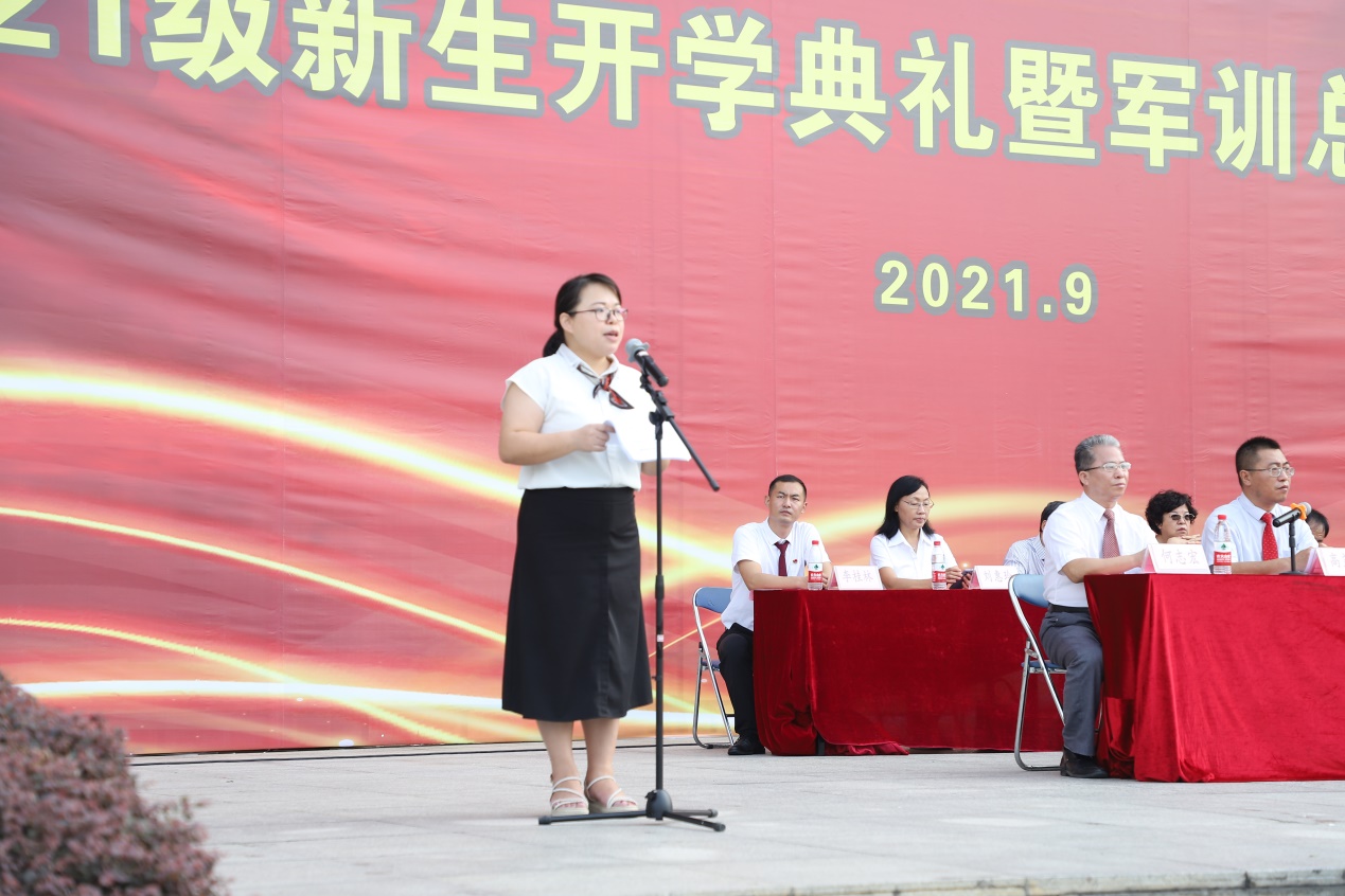 黨委書記林偉健作2021級(jí)新生軍訓(xùn)總結(jié)講話。指出軍訓(xùn)是大學(xué)學(xué)習(xí)生活的第一課,能夠磨練意志品質(zhì),培養(yǎng)艱苦奮斗、吃苦耐勞的作風(fēng),培養(yǎng)面對(duì)困難、堅(jiān)忍不拔、攻堅(jiān)克難的信心和勇氣,是受益終生的一課。同學(xué)們?cè)谲娪?xùn)中敢于吃苦、迎難而上,嚴(yán)守紀(jì)律,尊重教官,服從命令,聽從指揮,展示出了大家奮發(fā)向上的精神風(fēng)貌和朝氣蓬勃的青春風(fēng)采,希望大家繼續(xù)以飽滿的熱情、昂揚(yáng)的斗志、頑強(qiáng)的毅力投入到大學(xué)的學(xué)習(xí)中。同時(shí)提出要同學(xué)們多讀黨史、新中國(guó)史、改革開放史,從歷史中汲取智慧和力量,以“學(xué)黨史”為基本點(diǎn),以“強(qiáng)信念”為總開關(guān),以“跟黨走”為總目標(biāo)的要求,積極主動(dòng)走在前,勇?lián)鷱?qiáng)國(guó)使命,以實(shí)際行動(dòng)和優(yōu)異成績(jī)向建黨100周年獻(xiàn)禮。