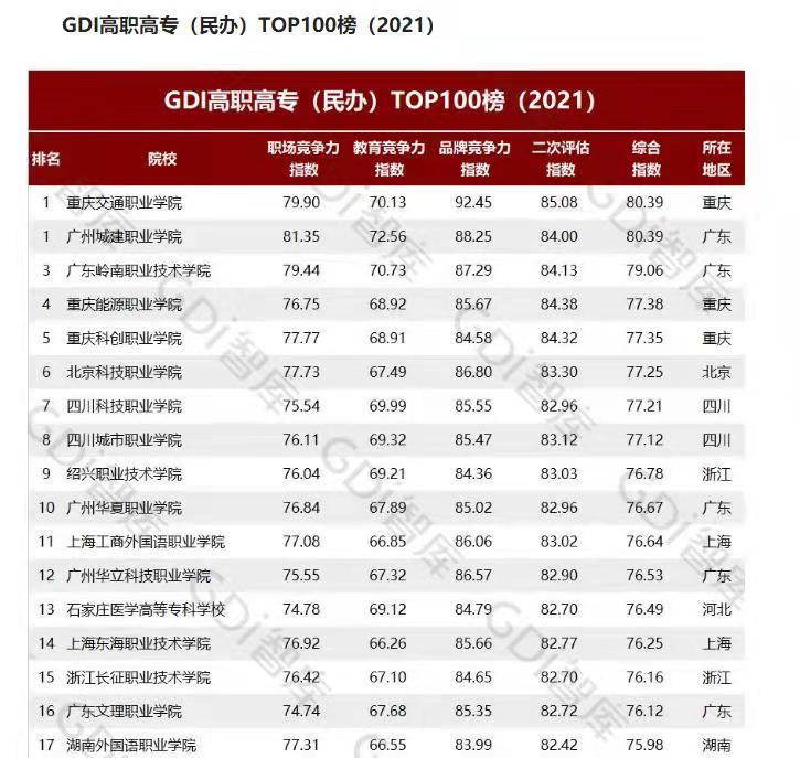 由教務(wù)處和科研處聯(lián)合提交的《通識教育視域下民辦高???/span>-產(chǎn)-教融合育人模式研究》是我校近年來開展的教育科學(xué)研究的高質(zhì)量成果。成績的取得為我校在全省乃至全國提高了聲譽,增強了品牌影響力。我校2020年“創(chuàng)強”考核得分創(chuàng)歷史新高,省教育廳公布“創(chuàng)新強校工程”考核結(jié)果顯示,我校2020年“創(chuàng)強”考核得分62.6分,較2019年考核提高近13分,創(chuàng)歷史新高,撥款增加22萬元。廣州日報GDI智庫全國高職高專(民辦)TOP100榜(2021)我校排名第12名,比2020年進步5名。