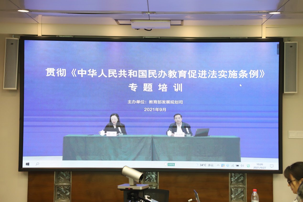 為深入貫徹落實(shí)新修訂的《中華人民共和國民辦教育促進(jìn)法實(shí)施條例》(以下簡稱《實(shí)施條例》),進(jìn)一步落實(shí)好黨的教育方針,做好《實(shí)施條例》普法宣貫工作,依法依規(guī)開展教育教學(xué)活動,防范化解民辦學(xué)校各種辦學(xué)風(fēng)險,9月27日,教育部發(fā)展規(guī)劃司開展《中華人民共和國民辦教育促進(jìn)法實(shí)施條例》專題培訓(xùn)。學(xué)校執(zhí)行校長馬龍海、黨委書記林偉健、校長助理郭仲先等在校領(lǐng)導(dǎo)率各職能部門負(fù)責(zé)人通過遠(yuǎn)程視頻會議系統(tǒng)集體參加了專題培訓(xùn)學(xué)習(xí)。