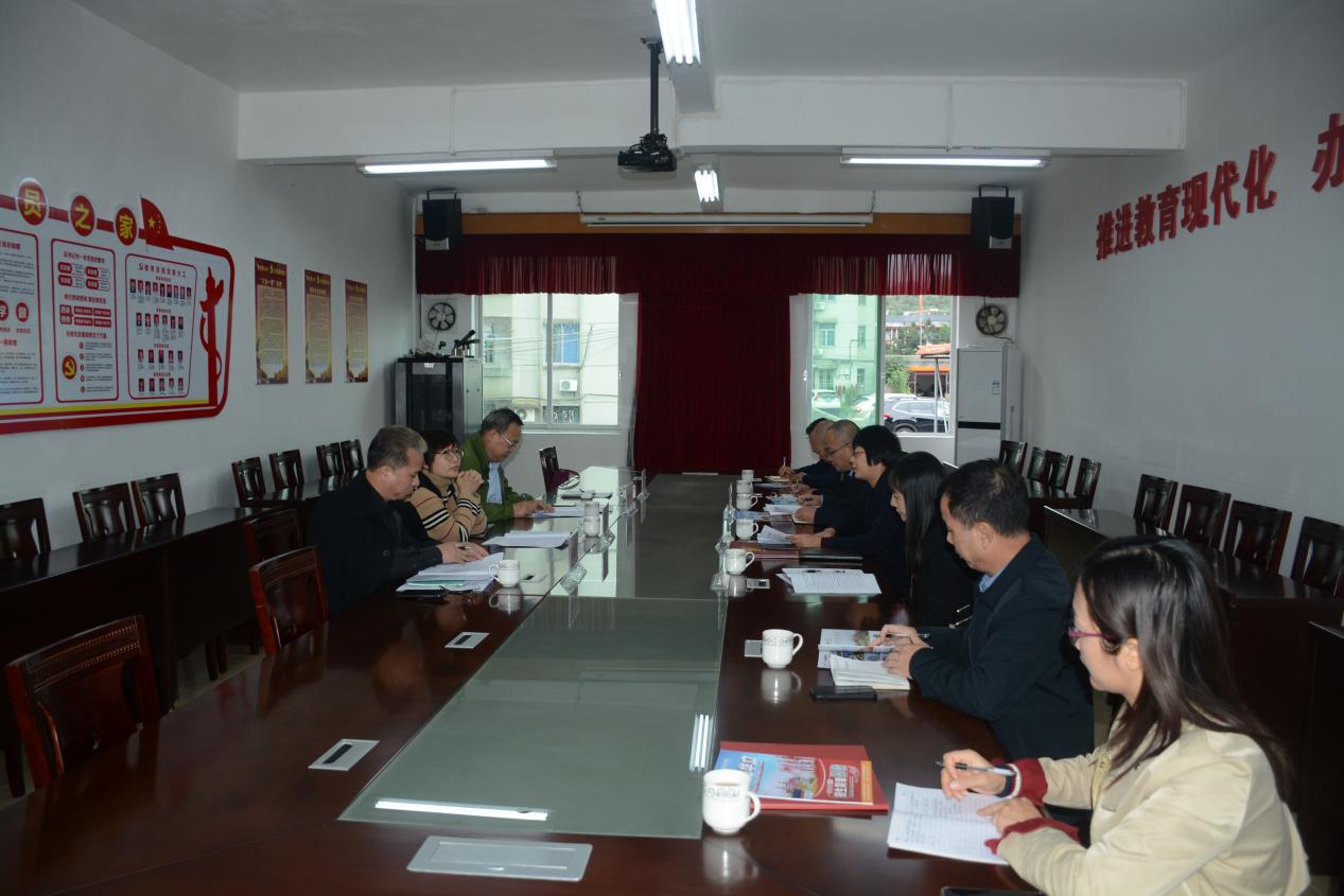 為貫徹落實【粵府〔2021〕55號】《廣東省人民政府關(guān)于印發(fā)廣東省推動基礎(chǔ)教育高質(zhì)量發(fā)展行動方案的通知》和【粵教師函〔2021〕27號】《廣東省教育廳關(guān)于做好全口徑全方位融入式幫扶粵東粵西粵北地區(qū)基礎(chǔ)教育高質(zhì)量發(fā)展工作的通知》文件精神,完成定向結(jié)隊精準幫扶粵東粵西粵北地區(qū)基礎(chǔ)教育高質(zhì)量發(fā)展的光榮任務(wù),2021年11月9-10號,學(xué)校馬俊副校長率隊到連山壯族瑤族自治縣開展基礎(chǔ)教育調(diào)研工作,參加調(diào)研工作的有學(xué)校辦公室主任朱少先、教務(wù)處副處長何志宏、團委書記朱君;連山壯族瑤族自治縣教局張華洪局長、楊麗君副局長、督導(dǎo)室植成育主任等領(lǐng)導(dǎo)以及教師發(fā)展中心、人事股、秘書股等科室相關(guān)工作人員。