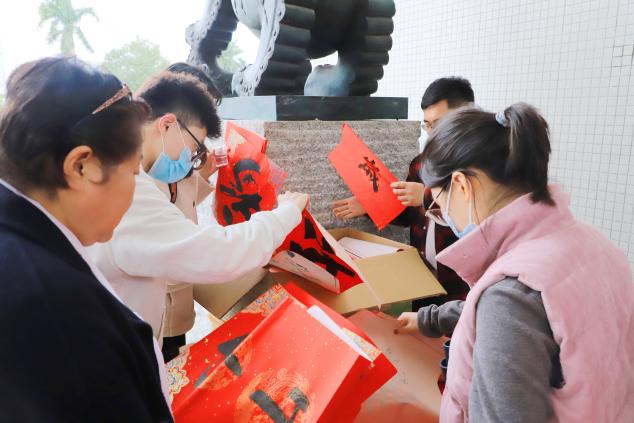 此外,學(xué)校書法協(xié)會舉行“寫春聯(lián)?送福氣”活動,一張張由學(xué)生們書寫的春聯(lián),凝聚著對中國優(yōu)秀傳統(tǒng)文化的熱愛和對春節(jié)的美好祝福,成為老師們手中最有“福氣”的年貨。