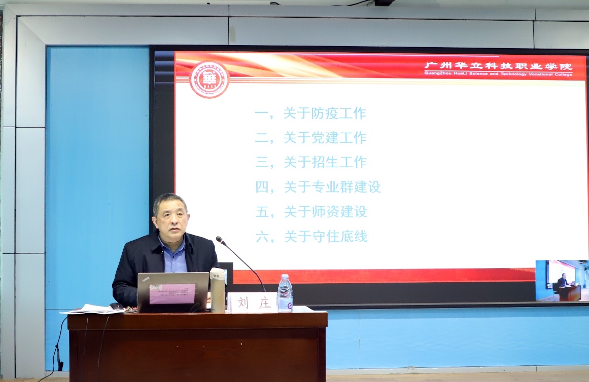 新春伊始,春暖花開。2月21日下午2時30分,學(xué)校在圖書館104召開中層干部會議,部署新學(xué)期工作。華立職院全體校領(lǐng)導(dǎo)和中層干部參加了會議,云浮校區(qū)通過視頻連線參加會議。校長劉莊作新學(xué)期工作部署。