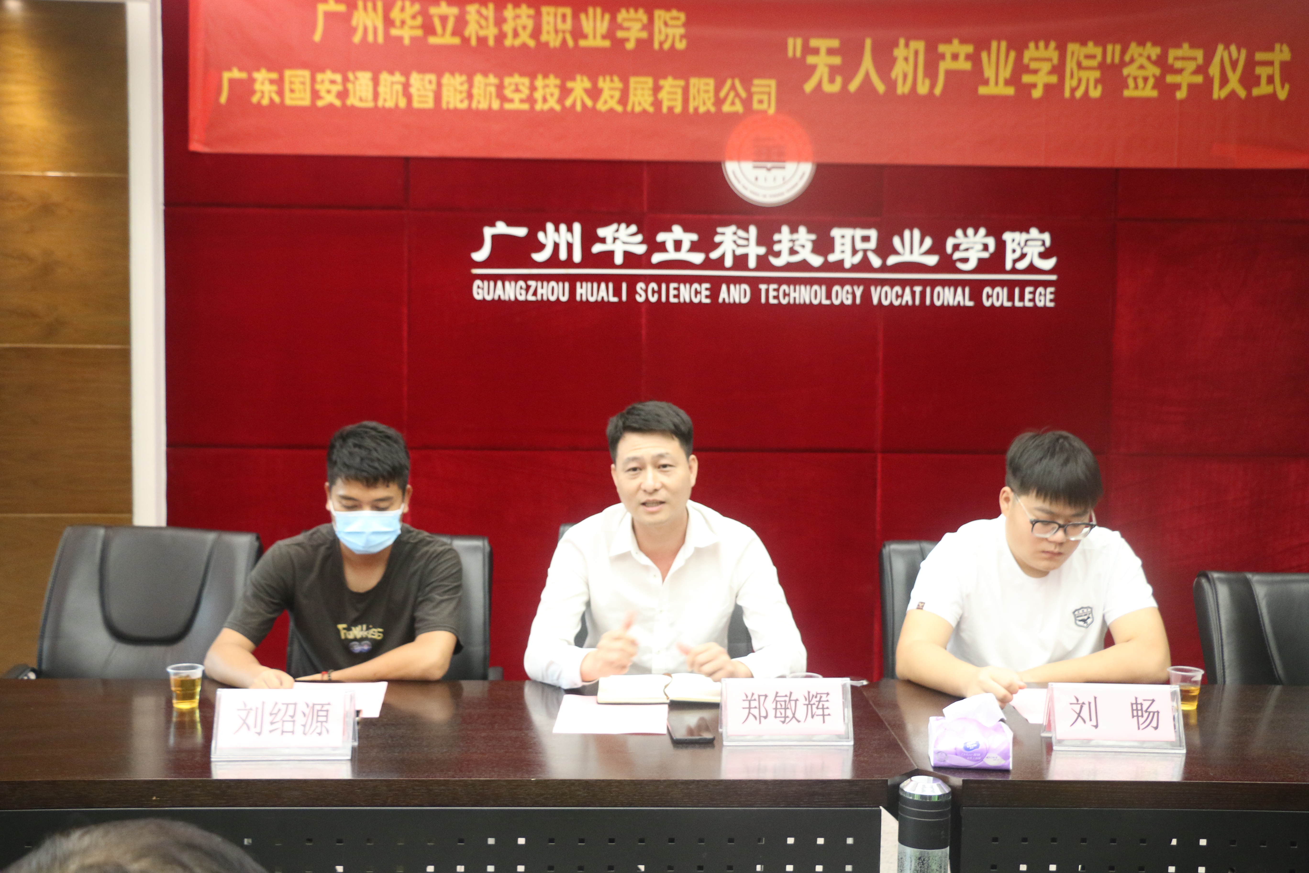 隨后,廣東國安通航有限公司鄭敏輝董事長介紹了無人機在電力巡查、測繪、遙感、圖像處理等方面的應(yīng)用,隨著無人機熱度的繼續(xù)攀登,無人機技術(shù)人才稀缺,市場就業(yè)前景很好,希望通過產(chǎn)業(yè)學院培養(yǎng)出掌握無人機應(yīng)用技術(shù),并取得無人機駕駛證的技術(shù)與技能人才來滿足社會需求。鄭敏輝董事長認為華立職院的環(huán)境很符合無人機的訓(xùn)練,希望今后舉辦一些無人機的競賽、航模會展和無人機技術(shù)研討會等活動。