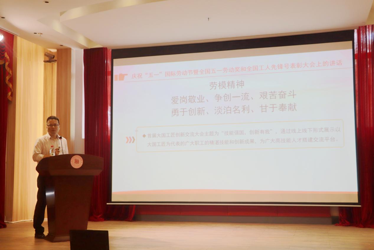 為深入學(xué)習(xí)貫徹習(xí)近平總書記關(guān)于職業(yè)教育的重要指示精神和落實《關(guān)于全面加強(qiáng)新時代大中小學(xué)勞動教育的意見》要求,在校園大力宣傳勞模精神、勞動精神、工匠精神,加強(qiáng)對廣大師生的勞動教育,唱響“勞動光榮、技能寶貴、創(chuàng)造偉大”的時代主旋律。5月20日上午,華立職院特邀廣東省勞動模范米輝同志到校為師生做“弘揚(yáng)勞模精神,爭做時代新人”主題報告。根據(jù)學(xué)校防疫要求,本次報告會采取線上線下結(jié)合的方式同時進(jìn)行,報告會現(xiàn)場安排在云浮校區(qū)圖書館報告廳,學(xué)校校長助理王洪艷、教務(wù)處副處長胡仁火以及部分師生代表在現(xiàn)場聆聽了報告。