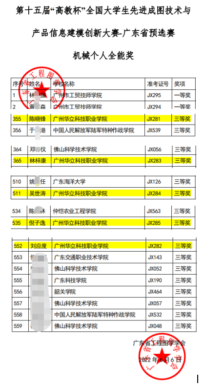 近日,第十五屆“高教杯”全國大學(xué)生先進(jìn)成圖技術(shù)與產(chǎn)品信息建模創(chuàng)新大賽-廣東省預(yù)選賽場上傳來捷報(bào),由我校馬洪德、許愛斌、吳寶君、陳立峰四位老師指導(dǎo)的陳曉鋒、林梓康、吳世濤、倪子逸、劉應(yīng)度5位機(jī)電學(xué)子從全省700多名參賽選手中脫穎而出,均斬獲大賽“機(jī)械個(gè)人全能獎(jiǎng)”三等獎(jiǎng)!我校榮獲大賽 “機(jī)械團(tuán)體獎(jiǎng)”三等獎(jiǎng),并獲得參加國賽資格,實(shí)現(xiàn)我校該項(xiàng)賽事歷史性突破!我校也是此次大賽中榮獲團(tuán)體獎(jiǎng)和獲得國賽資格的唯一民辦高職院校。