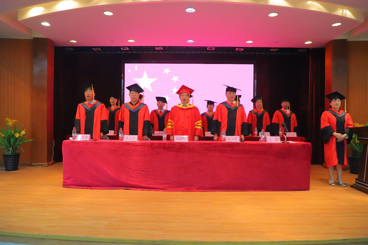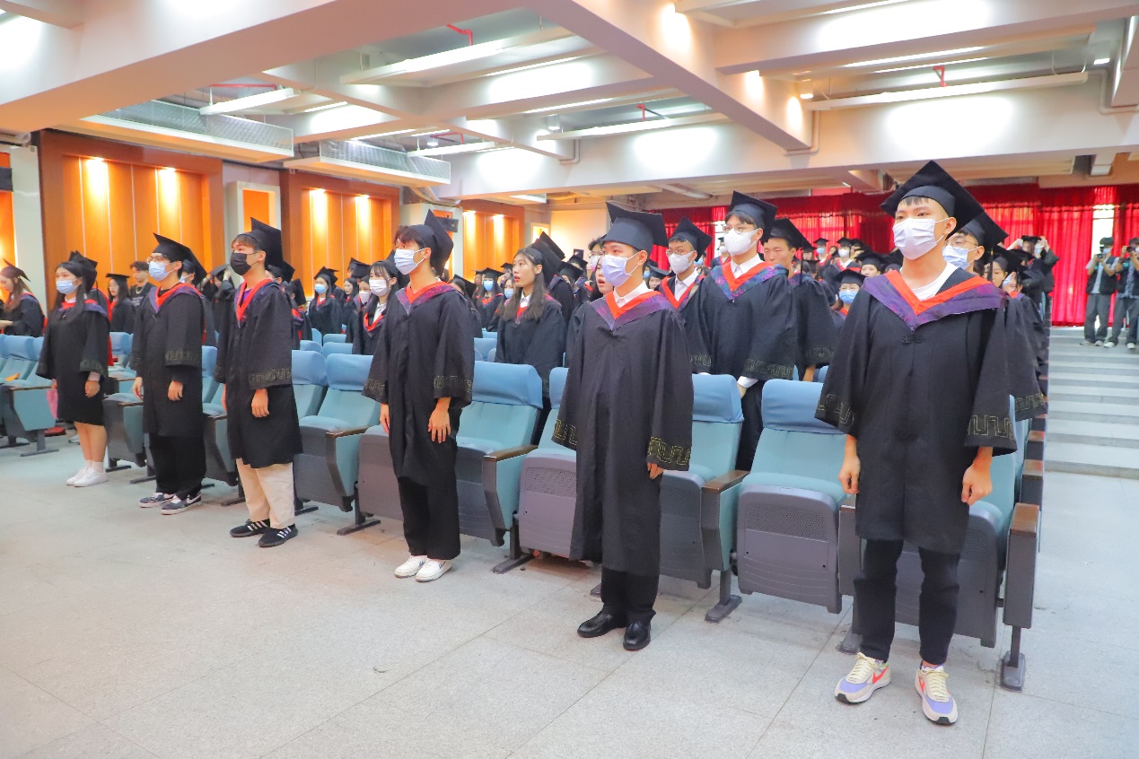 畢業(yè)典禮在雄壯的國歌聲中拉開帷幕。
