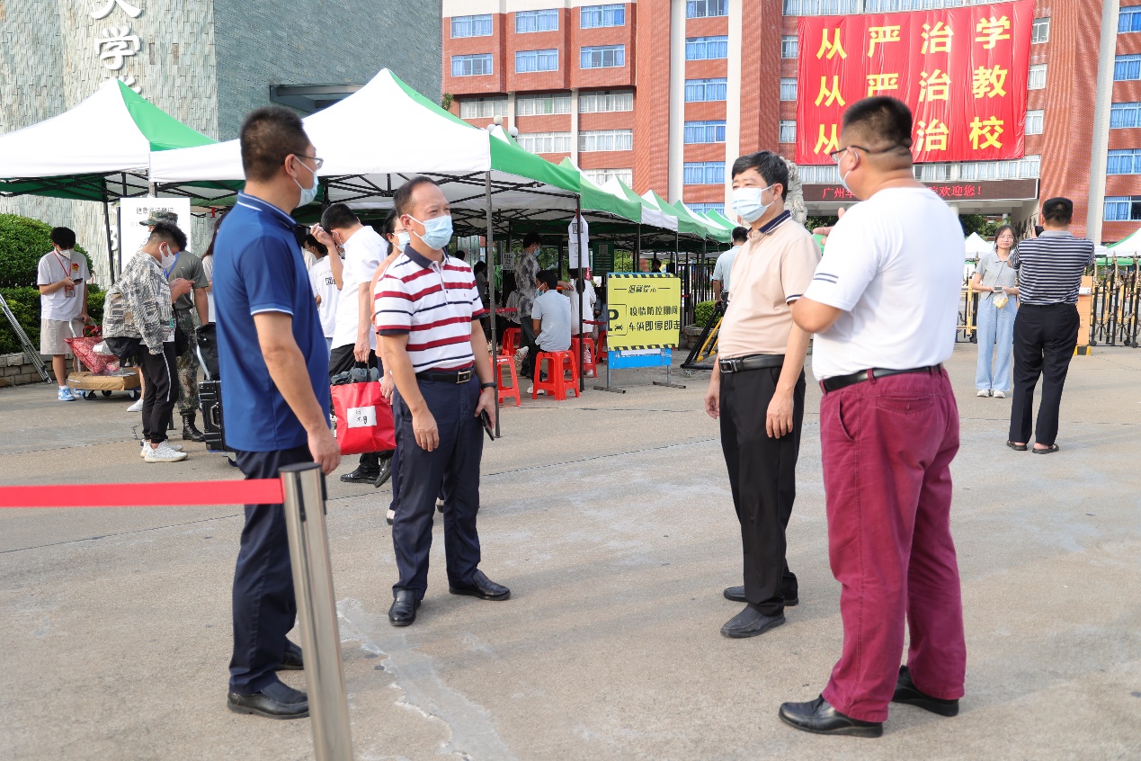 9月1日,廣州華立科技職業(yè)技術(shù)學(xué)院校長(zhǎng)易健民、黨委書記陳良聲、副校長(zhǎng)高堯來,率相關(guān)職能部門對(duì)迎新準(zhǔn)備工作進(jìn)行檢查,對(duì)相關(guān)工作人員表示慰問,就學(xué)生入學(xué)報(bào)到、學(xué)生生活保障等工作進(jìn)行指導(dǎo)。