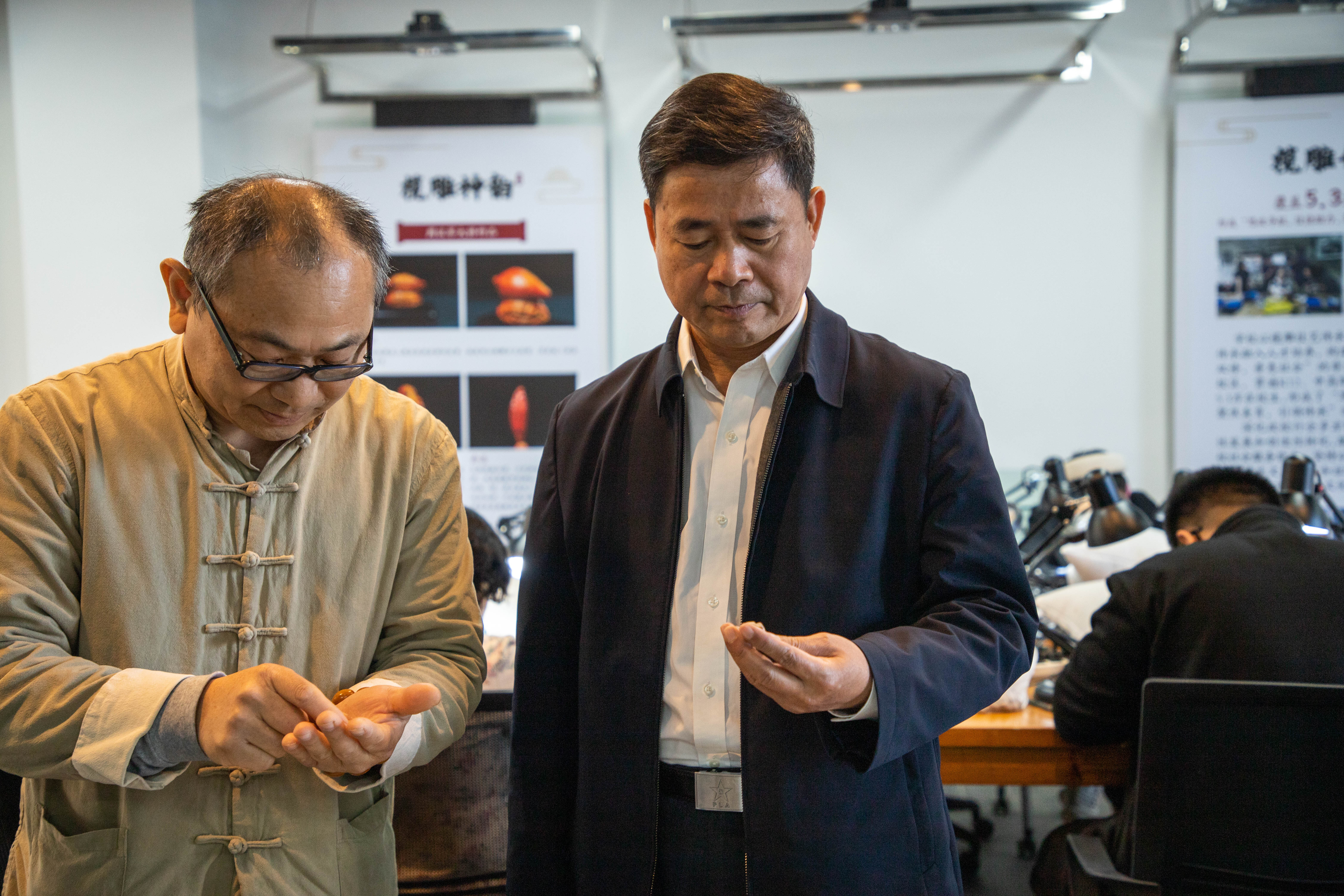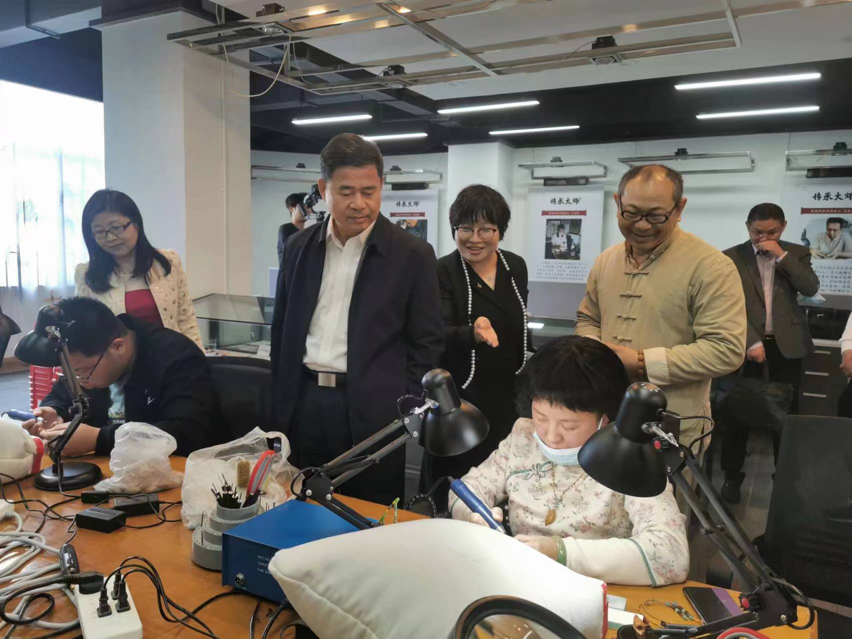 調(diào)研組成員會(huì)后參觀了學(xué)校就業(yè)創(chuàng)業(yè)辦公場(chǎng)地、武裝部、征兵工作站、周漢軍欖雕藝術(shù)大師工作室等場(chǎng)地,與學(xué)校師生進(jìn)行近距離交流。