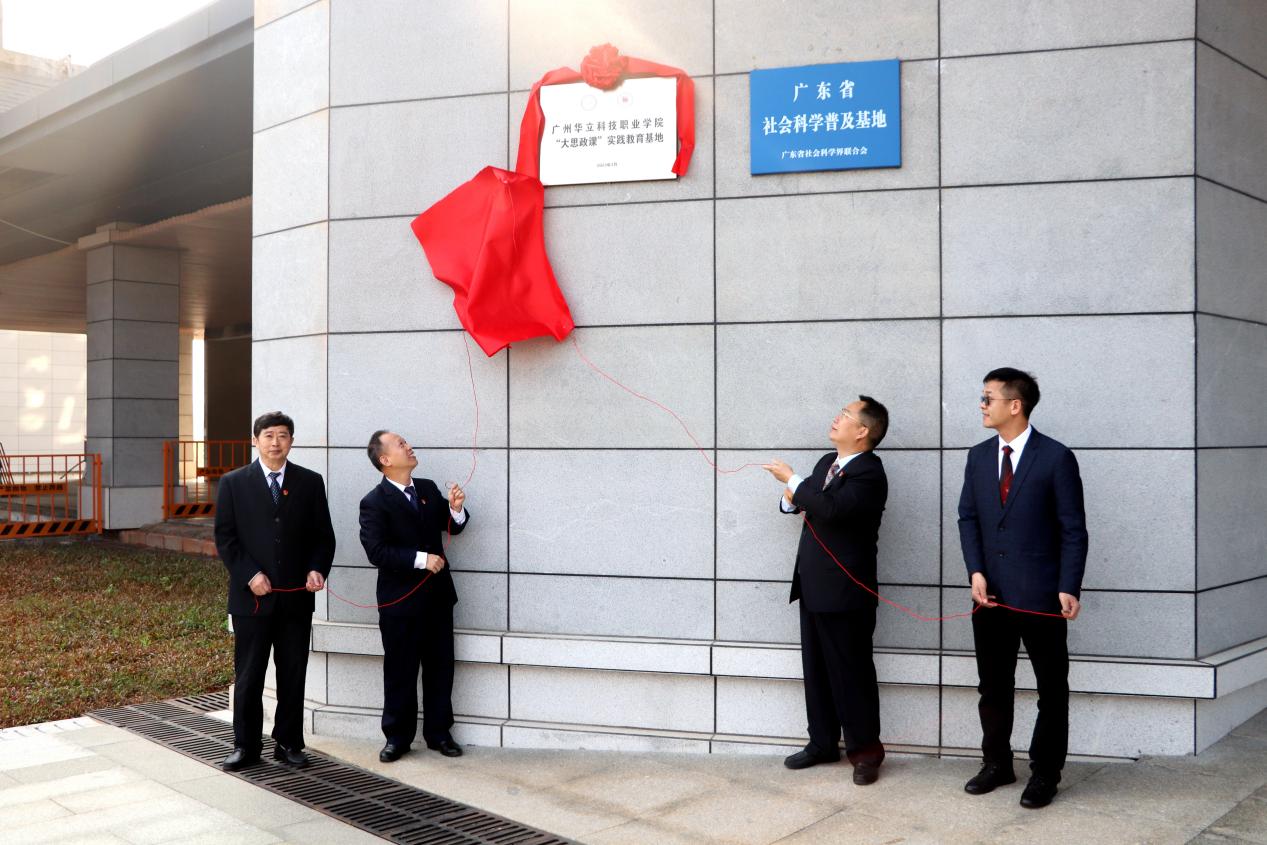 云浮市檔案館館長陳芳斌、云浮市教育局教師發(fā)展中心副主任伍燕坤、廣州華立科技職業(yè)學(xué)院黨委書記陳良聲、校長易健民共同為“云浮市檔案館市地方志辦 廣州華立科技職業(yè)學(xué)院‘大思政課’實(shí)踐教學(xué)基地”揭牌。