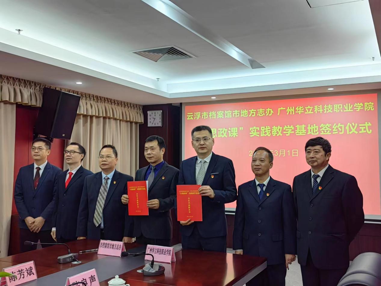 3月1日上午,廣州華立科技職業(yè)學(xué)院“大思政課”教育實(shí)踐基地簽字揭牌儀式在云浮市檔案館舉行。易健民校長(zhǎng)、云浮市檔案館館長(zhǎng)陳芳斌等領(lǐng)導(dǎo)全程參與,陳良聲書(shū)記在基地揭牌儀式上致辭,張劍鋒校長(zhǎng)助理代表校方在合作共建協(xié)議書(shū)上簽字。云浮校區(qū)馬克思主義學(xué)院教師、部分學(xué)生代表參加了揭牌儀式,云浮市委辦、云浮市教育局也派代表參加了上述活動(dòng)。廣東省、云浮市多家媒體也進(jìn)行了現(xiàn)場(chǎng)采訪報(bào)道。