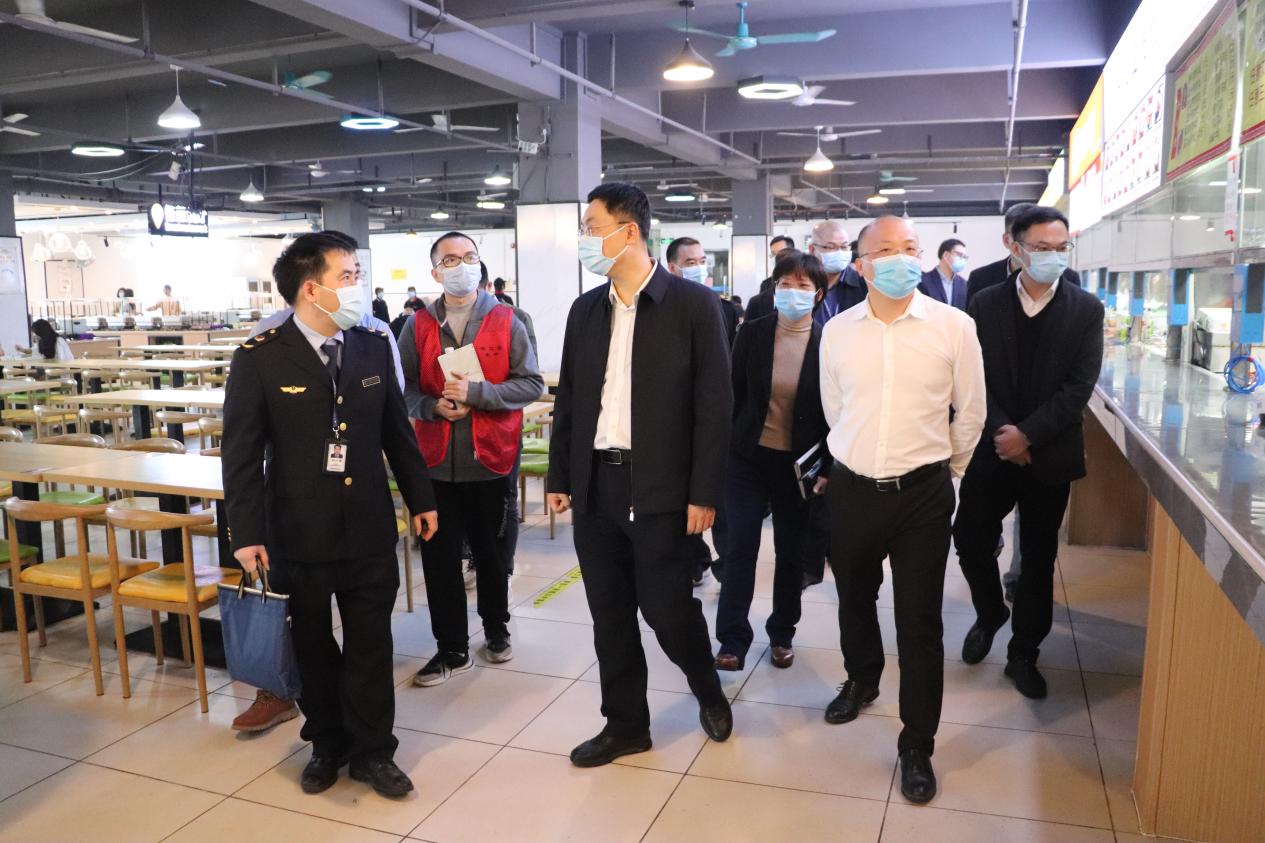 2023年3月8日上午十一點,云浮市常委、常務副市長吳澤桐,市政府副秘書長黃巧慧,市、區(qū)兩級市場監(jiān)督局、教育局主要領導一行蒞臨華立職院云浮校區(qū)開展食品安全包保督導檢查工作。我校副校長王洪艷、校長助理張劍鋒,總務處、保衛(wèi)處、學生處、校辦主要負責人陪同檢查。