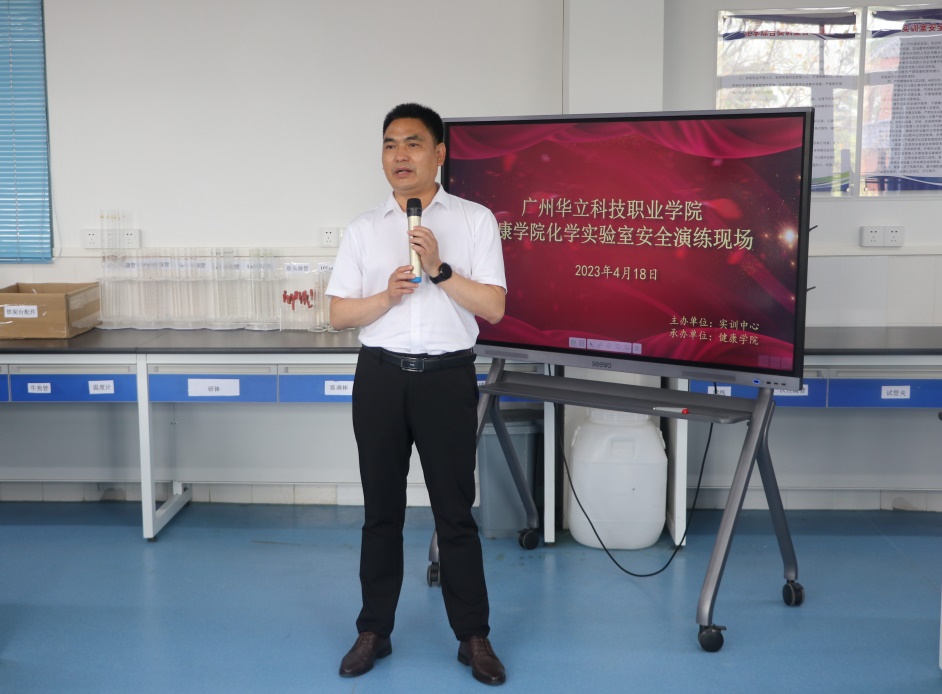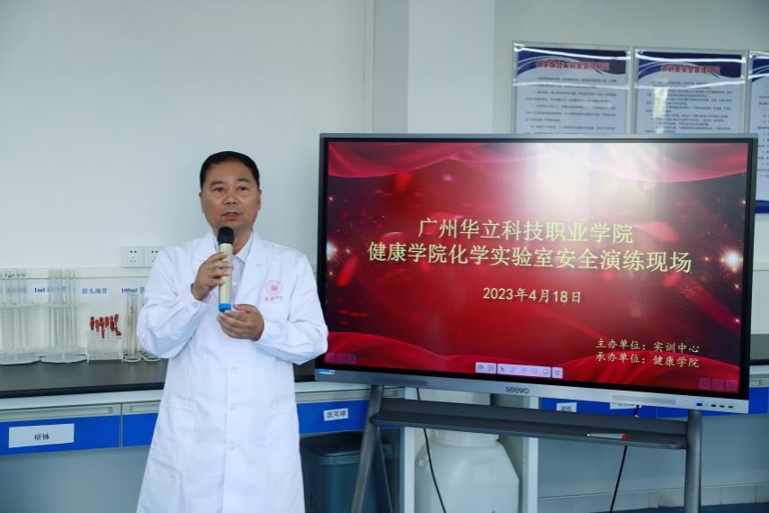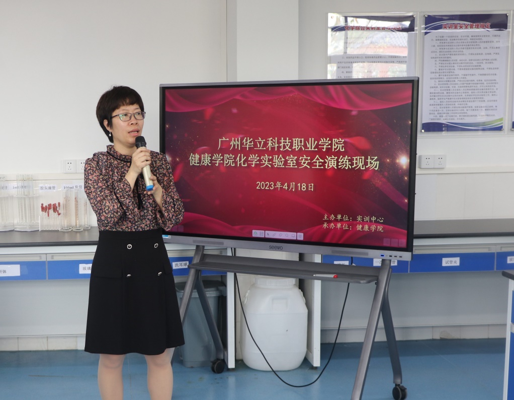為認(rèn)真貫徹落實(shí)《廣東省教育廳轉(zhuǎn)發(fā)教育部辦公廳關(guān)于印發(fā)《高等學(xué)校實(shí)驗(yàn)室安全規(guī)范》的通知》的文件精神,切實(shí)提高師生實(shí)驗(yàn)室安全意識(shí),確?;瘜W(xué)實(shí)驗(yàn)室的安全性,提高學(xué)校實(shí)驗(yàn)室突發(fā)事件的應(yīng)急處置能力。4月18日上午,由實(shí)訓(xùn)中心主辦,健康學(xué)院承辦的化學(xué)實(shí)驗(yàn)室安全演練在西2-207室舉行。學(xué)校董事長(zhǎng)助理李引章,黨委副書記、副校長(zhǎng)高堯來,校長(zhǎng)助理葉春桃,各二級(jí)學(xué)院(二級(jí)部門)負(fù)責(zé)人、實(shí)驗(yàn)室負(fù)責(zé)人、實(shí)訓(xùn)中心、保衛(wèi)處、總務(wù)處、學(xué)生處、教務(wù)處及其他專業(yè)的教師代表和學(xué)生代表參加了本次演練,本次演練由健康學(xué)院許小玲老師和2021級(jí)藥學(xué)吳丹婷同學(xué)主持。