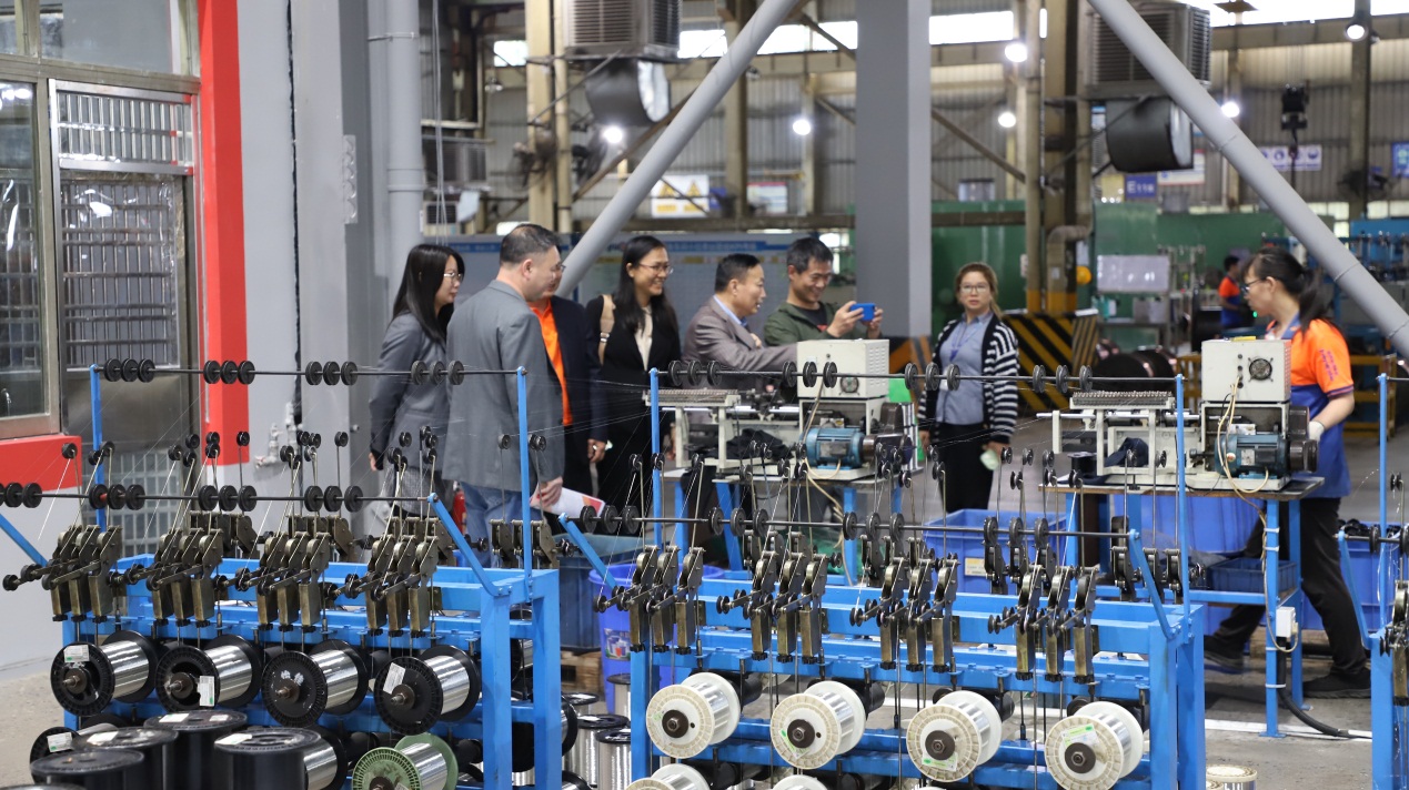為了進(jìn)一步了解電線電纜的生產(chǎn)過(guò)程,王秀敏院長(zhǎng)一行人參觀了電纜的接線生產(chǎn)車(chē)間等,對(duì)電線電纜生產(chǎn)設(shè)備、生產(chǎn)工藝、質(zhì)量檢驗(yàn)和崗位需求有了更深的了解。