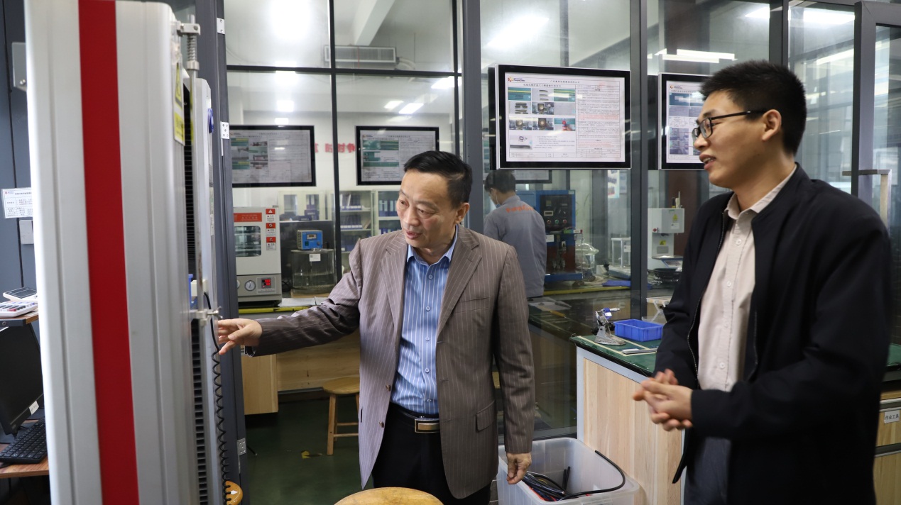 緊接著,王秀敏院長(zhǎng)一行人到番纜集團(tuán)研發(fā)部參觀,研發(fā)部黃應(yīng)敏經(jīng)理介紹了番纜集團(tuán)專(zhuān)門(mén)為國(guó)家電網(wǎng)和南方電網(wǎng)開(kāi)發(fā)的輸電線路導(dǎo)線緊線器和連接裝置,廣泛使用到輸配電工程施工中,該裝置獲得了多項(xiàng)發(fā)明專(zhuān)利。黃應(yīng)敏經(jīng)理表示在產(chǎn)品技術(shù)研發(fā)和共建科研平臺(tái)方面可以校企合作,共同開(kāi)發(fā)。