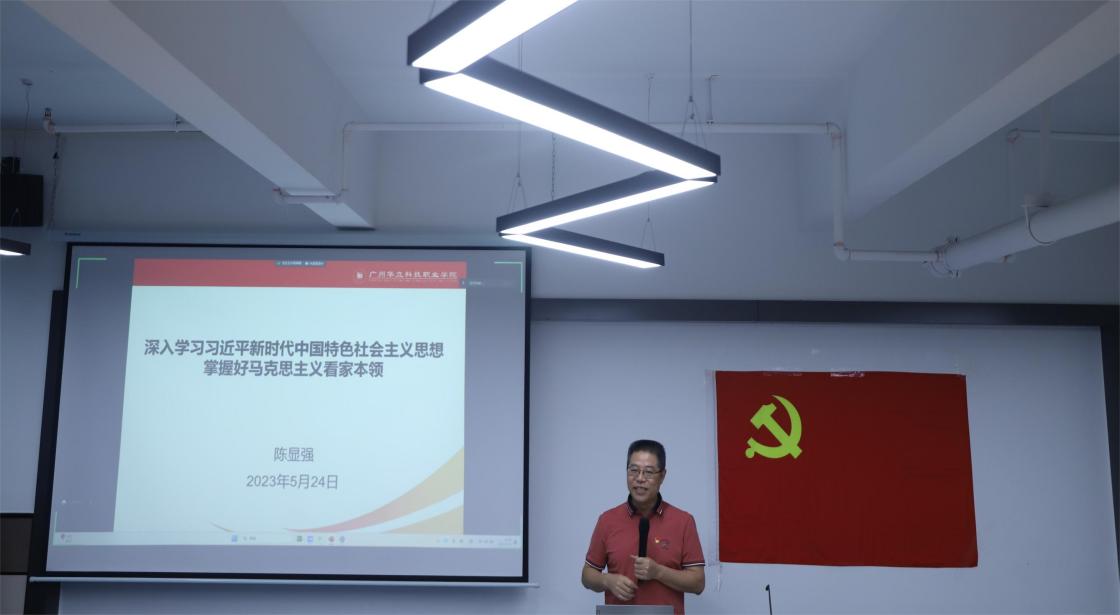 按照《中共廣州華立科技職業(yè)學(xué)院委員會(huì)關(guān)于深入開展學(xué)習(xí)貫徹習(xí)近平新時(shí)代中國特色社會(huì)主義思想主題教育學(xué)習(xí)研討方案》整體安排,5月24日,廣州華立科技職業(yè)學(xué)院副校長陳顯強(qiáng)為計(jì)算機(jī)信息工程學(xué)院黨總支的師生黨員、入黨積極分子講授《深入學(xué)習(xí)習(xí)近平新時(shí)代中國特色社會(huì)主義思想,掌握好馬克思主義看家本領(lǐng)》專題黨課。專題黨課以現(xiàn)場(chǎng)和云浮校區(qū)視頻連線相結(jié)合的形式進(jìn)行,計(jì)算機(jī)信息工程學(xué)院黨總支師生黨員、入黨積極分子103人參加黨課。