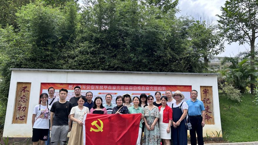 為深入學(xué)習(xí)貫徹習(xí)近平新時(shí)代中國(guó)特色社會(huì)主義思想,我校常務(wù)副校長(zhǎng)馬俊帶領(lǐng)藝術(shù)與傳媒學(xué)院黨總支教師黨員于2023年6月10日前往中共增龍博中心縣委舊址紅色教育基地,開展“不忘初心跟黨走,青春筑夢(mèng)新時(shí)代”主題黨日活動(dòng)。