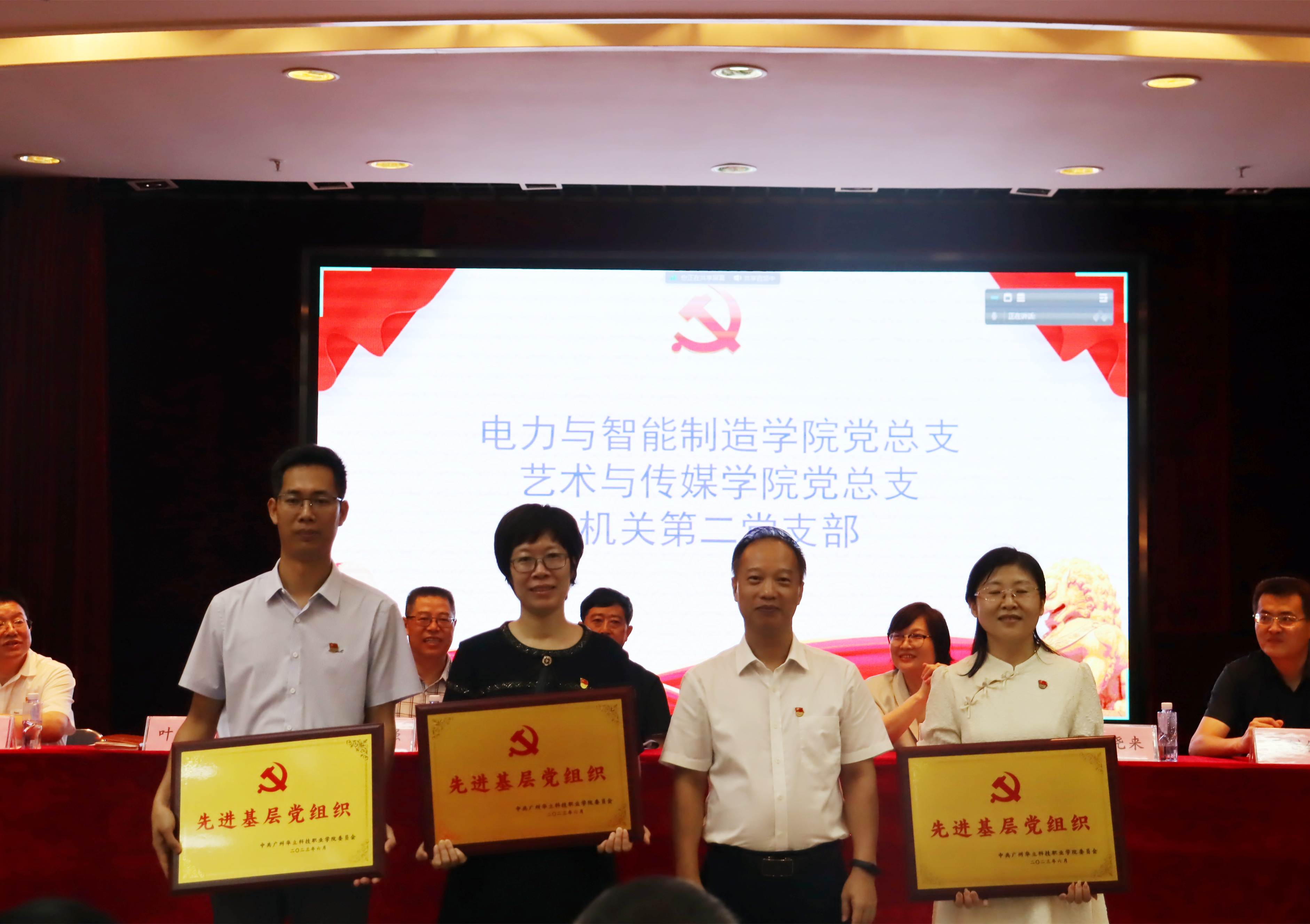 陳良聲、易健民、馬俊、陳顯強(qiáng)、王洪艷分別為受表彰的先進(jìn)基層黨組織、優(yōu)秀黨務(wù)工作者和優(yōu)秀共產(chǎn)黨員頒發(fā)榮譽(yù)證書(shū)、授匾。