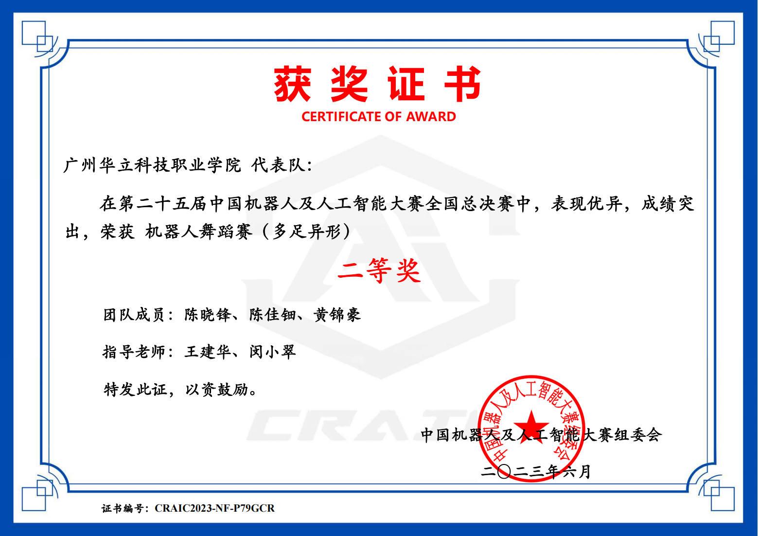 近日,廣州華立科技職業(yè)學(xué)院計(jì)算機(jī)信息工程學(xué)院的學(xué)生在第二十五屆中國(guó)機(jī)器人及人工智能大賽比中取得優(yōu)異成績(jī)。經(jīng)廣州華立科技職業(yè)學(xué)院的組織和指導(dǎo),其中由計(jì)算機(jī)信息工程學(xué)院王建華院長(zhǎng)和閔小翠主任指導(dǎo)的學(xué)生團(tuán)隊(duì)分別獲得了省級(jí)一等獎(jiǎng)和二等獎(jiǎng)并晉級(jí)全國(guó)決賽,學(xué)生團(tuán)隊(duì)在決賽中展現(xiàn)出優(yōu)秀的機(jī)器人技術(shù)和團(tuán)隊(duì)合作能力,最終斬獲兩個(gè)全國(guó)二等獎(jiǎng)。