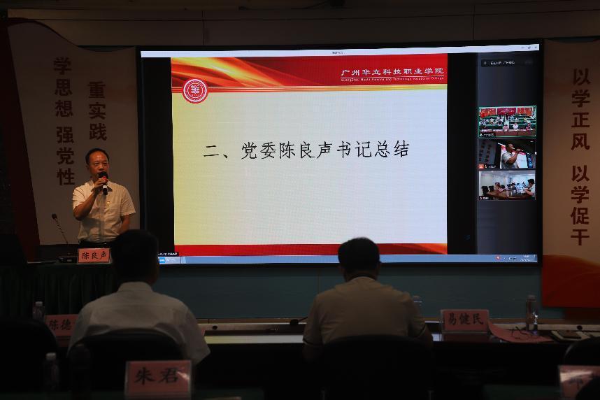 述職報(bào)告以黨委書(shū)記陳良聲代表學(xué)校領(lǐng)導(dǎo)班子做了總結(jié)。他指出,本次述職報(bào)告提出的內(nèi)容亮點(diǎn)突出,問(wèn)題深刻,措施有力。報(bào)告內(nèi)容突出了兩校區(qū)之間工作的互相融合、學(xué)校事業(yè)發(fā)展與黨的建設(shè)相融合的特色,也反映了學(xué)校各部門、二級(jí)學(xué)院之間發(fā)展的不充分、不平衡的問(wèn)題。同時(shí),感謝各位中層干部過(guò)去一年的辛苦付出,希望新學(xué)年大家一起繼續(xù)努力,并對(duì)此提出了五點(diǎn)希望:1.要以習(xí)近平總書(shū)記世界觀和方法論推動(dòng)學(xué)校發(fā)展;2.通過(guò)本次述職總結(jié)、全面梳理,進(jìn)一步揚(yáng)優(yōu)勢(shì)、強(qiáng)弱項(xiàng)、補(bǔ)短板,全力推進(jìn)學(xué)校的可持續(xù)發(fā)展;3.各部門做好主題教育后續(xù)工作,把主題教育取得的成效轉(zhuǎn)化為推動(dòng)學(xué)??焖佟⒏哔|(zhì)量發(fā)展的強(qiáng)大動(dòng)力;4.各二級(jí)學(xué)院把黨建組織優(yōu)勢(shì)轉(zhuǎn)化為推動(dòng)學(xué)院事業(yè)發(fā)展的動(dòng)力;5.落實(shí)學(xué)校工作指南和工作規(guī)范,提高學(xué)校依法辦學(xué)、按章辦事能力,推進(jìn)學(xué)校法治化、規(guī)范化辦學(xué)水平。