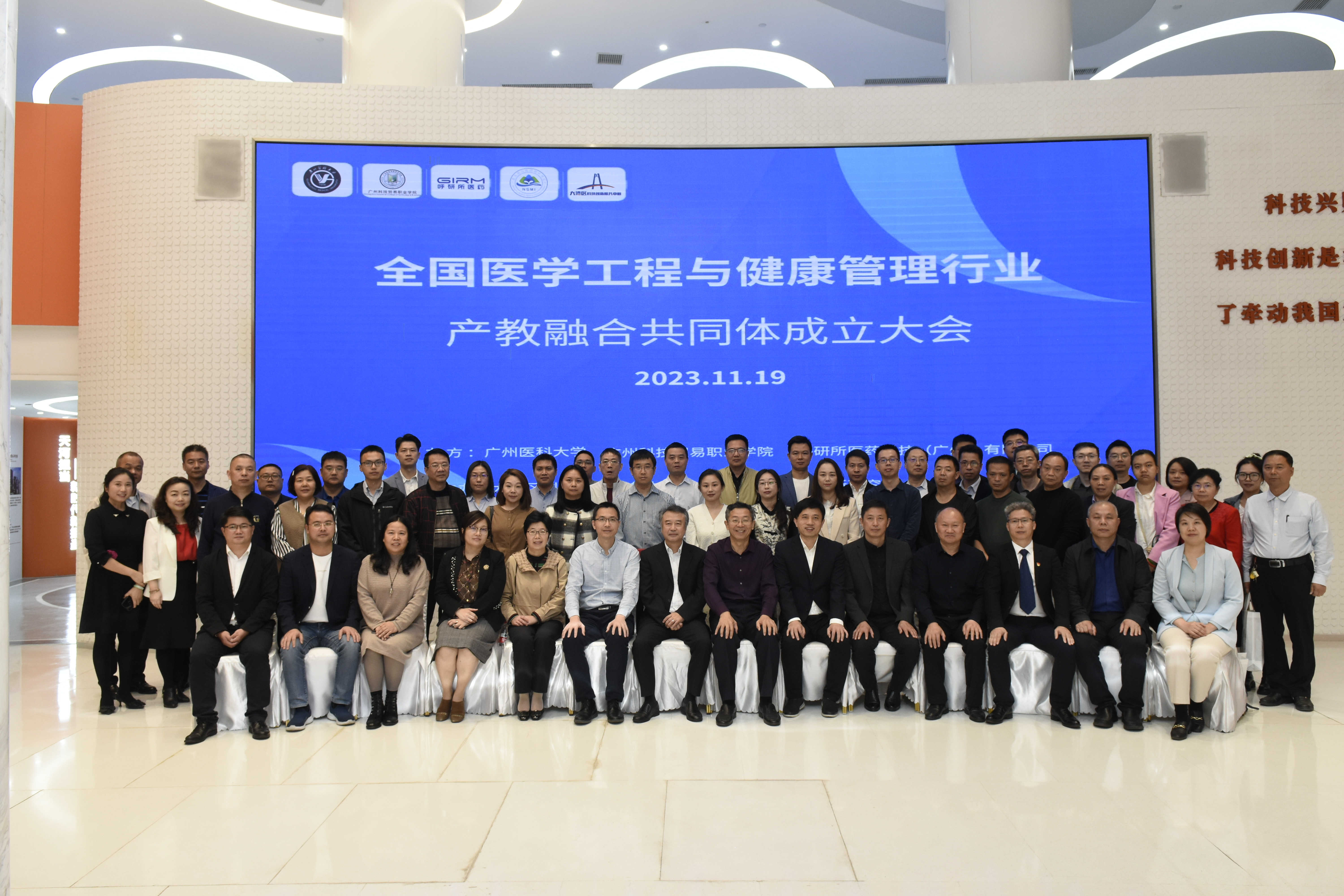大會還審議通過了“共同體”《廣州共識》,進行了主題報告和交流。會議上,共同體各成員單位和相關部門就如何貫徹落實黨的二十大精神,深化現(xiàn)代職業(yè)教育體系建設改革,堅持以教促產(chǎn)、以產(chǎn)助教,產(chǎn)教融合、產(chǎn)學合作,推進我國職業(yè)教育高質量發(fā)展等方面進行了廣泛的交流。最后,“全國醫(yī)學工程與健康管理行業(yè)產(chǎn)教融合共同體”宣布成立,理事長單位和副理事長單位分別上臺作了發(fā)言。會后全體與會單位和代表合影留念,并參觀考察了廣州(國際)科技成果轉化天河基地。