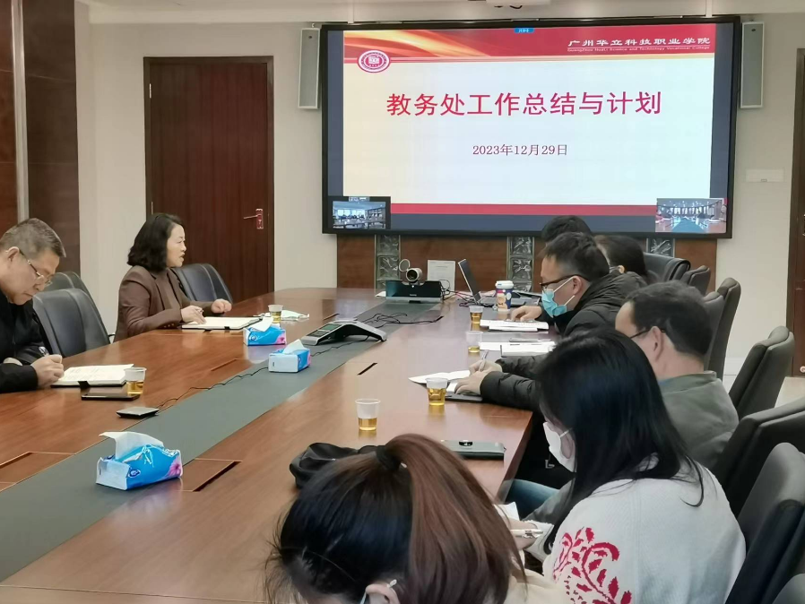 2023年12月29日上午,教務(wù)處組織召開(kāi)兩校區(qū)2023-2024學(xué)年第一學(xué)期期末教學(xué)工作總結(jié)與交流會(huì)議。會(huì)議由教務(wù)處處長(zhǎng)吳峰主持,分管教學(xué)工作的副校長(zhǎng)陳顯強(qiáng)、校長(zhǎng)助理張劍鋒參加會(huì)議,認(rèn)真聽(tīng)取大家的總結(jié)發(fā)言和意見(jiàn)建議。廣州校區(qū)教務(wù)處和云浮校區(qū)教務(wù)處全體成員參加會(huì)議。