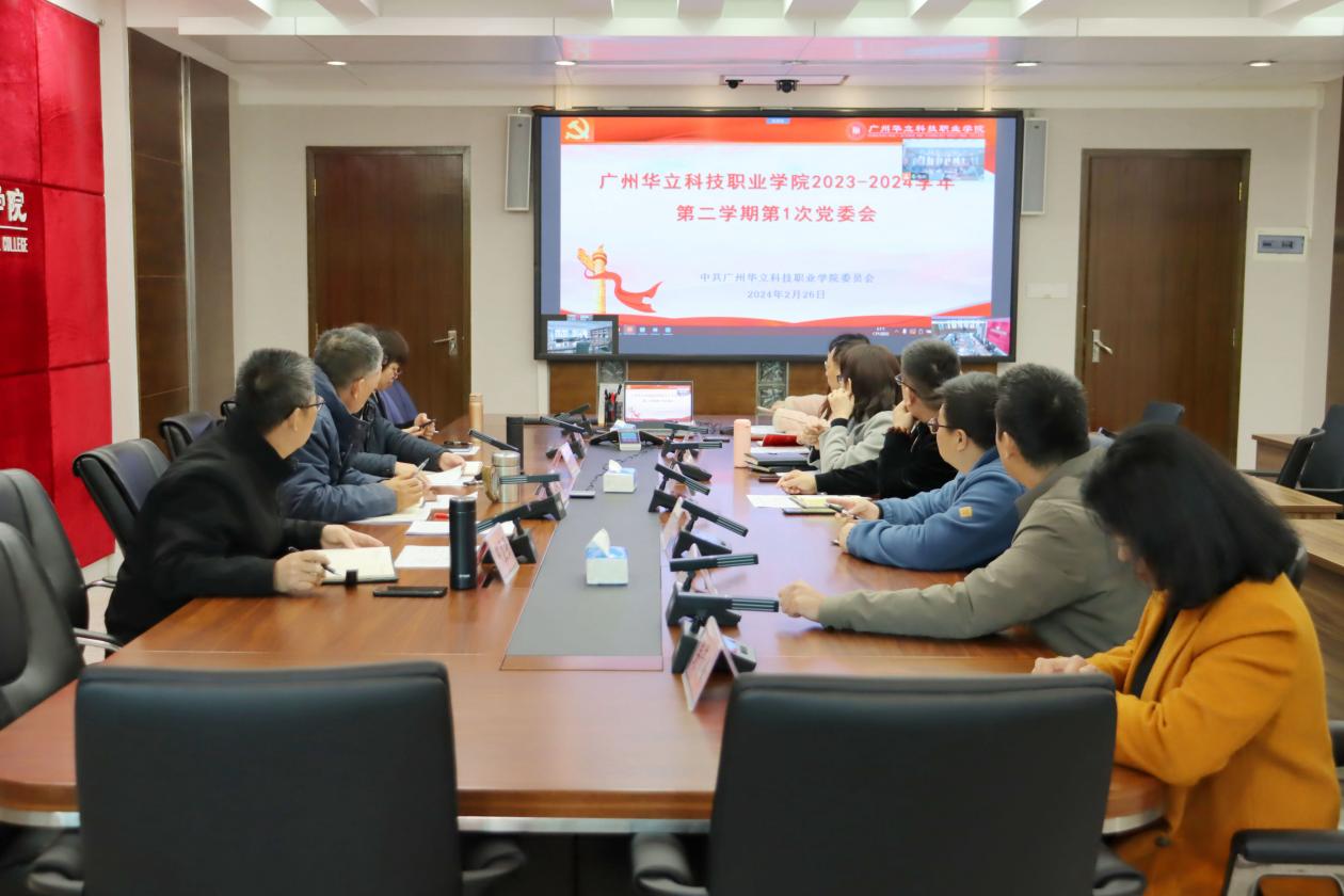 新學(xué)期開學(xué)伊始,2月26日上午,廣州華立科技職業(yè)學(xué)院召開了本學(xué)期第一次黨委會(huì),第一議題組織學(xué)習(xí)習(xí)近平總書記新質(zhì)生產(chǎn)力理論。黨委書記陳良聲主持并領(lǐng)學(xué),黨委副書記、校長陳德清談學(xué)習(xí)體會(huì),其他同志作研討發(fā)言。學(xué)校領(lǐng)導(dǎo)、黨委委員、黨委辦公室、學(xué)校辦公室、黨委組織部、黨委教師工作部、黨委學(xué)生工作部、教務(wù)處等負(fù)責(zé)人參加學(xué)習(xí),云浮校區(qū)和正在國外進(jìn)修的校領(lǐng)導(dǎo)通過視頻連線參加。