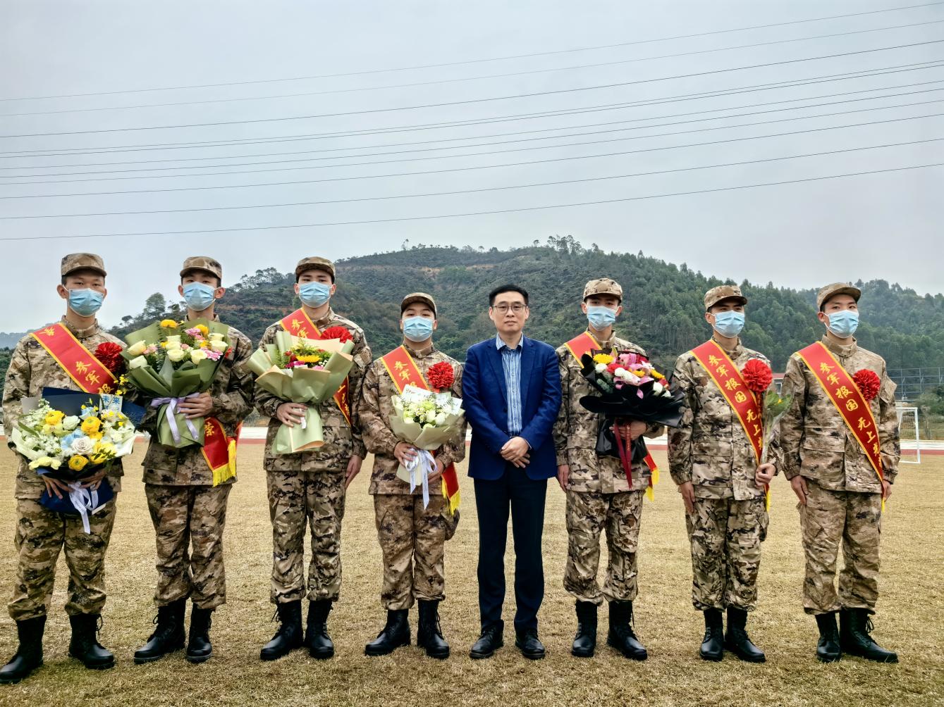 最后,學(xué)校武裝部陳勝軍部長和新兵們合影留念,歡送會(huì)的圓滿結(jié)束,新兵們帶著學(xué)校老師和家長的囑托與期望,踏上新的征程。
