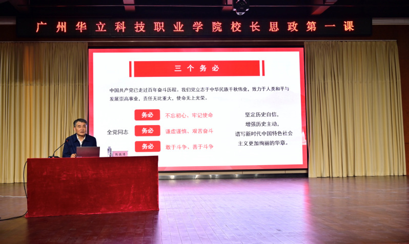 用習(xí)近平新時代中國特色社會主義思想鑄魂育人 培養(yǎng)社會主義事業(yè)建設(shè)者和接班人 ——廣州華立科技職業(yè)學(xué)院校長陳德清為學(xué)生上“思政第一課”
