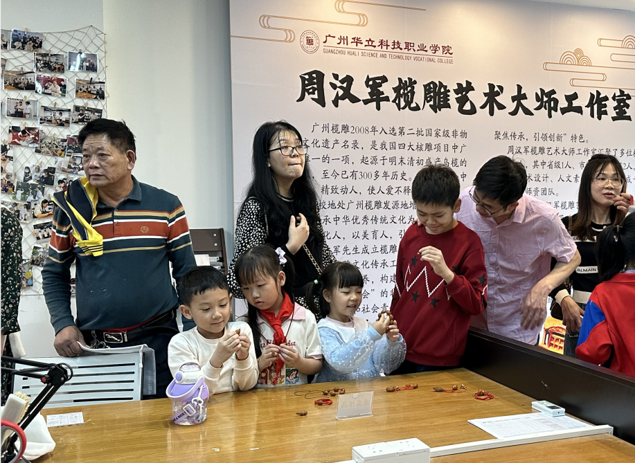 3月24日,中華優(yōu)秀傳統(tǒng)文化傳承基地——廣州華立科技職業(yè)學(xué)院廣州欖雕館舉辦“科普在華立,傳承有你我”為主題的開放活動,活動吸引了來自廣州市黃廣附屬學(xué)校、增城區(qū)永寧街天譽小學(xué)、增江街中心小學(xué)、增城中學(xué)附屬小學(xué)、增城區(qū)碧桂園學(xué)校、增城區(qū)實驗小學(xué)等多家中小學(xué)的學(xué)生和家長。