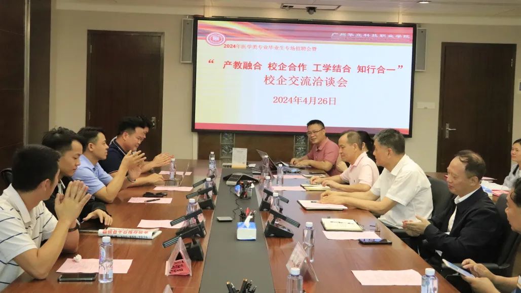 為更好地做好學(xué)校實習(xí)就業(yè)工作,助力校企精準(zhǔn)對接,更多更寬地拓展實習(xí)就業(yè)崗位,招聘會當(dāng)天學(xué)校還與大參林醫(yī)藥集團(tuán)股份有限公司、廣州弦歌堂生物科技有限公司等企業(yè)進(jìn)行了座談交流并舉行了授牌儀式。學(xué)校校長陳德清、黨委書記陳良聲出席了座談會,并與企業(yè)在人才培養(yǎng)、合作模式等方面進(jìn)行了深入交流。