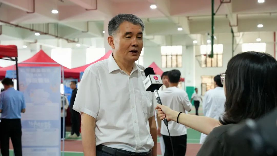 陳德清校長接受增城融媒體中心采訪。采訪中,陳校首先介紹了本次招聘會的總體狀況;其次介紹了為全力推動畢業(yè)生實現(xiàn)更高質(zhì)量、更充分就業(yè),學(xué)校采取的部分措施。他提到,學(xué)校不定期通過線上+線下的方式多渠道開展校園招聘活動,為畢業(yè)生搭建更方便快捷的求職平臺。學(xué)校領(lǐng)導(dǎo)班子、二級學(xué)院院長帶頭訪企拓崗,向企業(yè)介紹學(xué)生專業(yè)學(xué)習(xí)以及課程開設(shè)等情況,提高人才培養(yǎng)與企業(yè)需求的契合度。各二級學(xué)院還組建了就業(yè)專項工作小組,對畢業(yè)生及時宣講普及就業(yè)政策,積極開展就業(yè)指導(dǎo)工作,滿足畢業(yè)生多元化的服務(wù)需求。