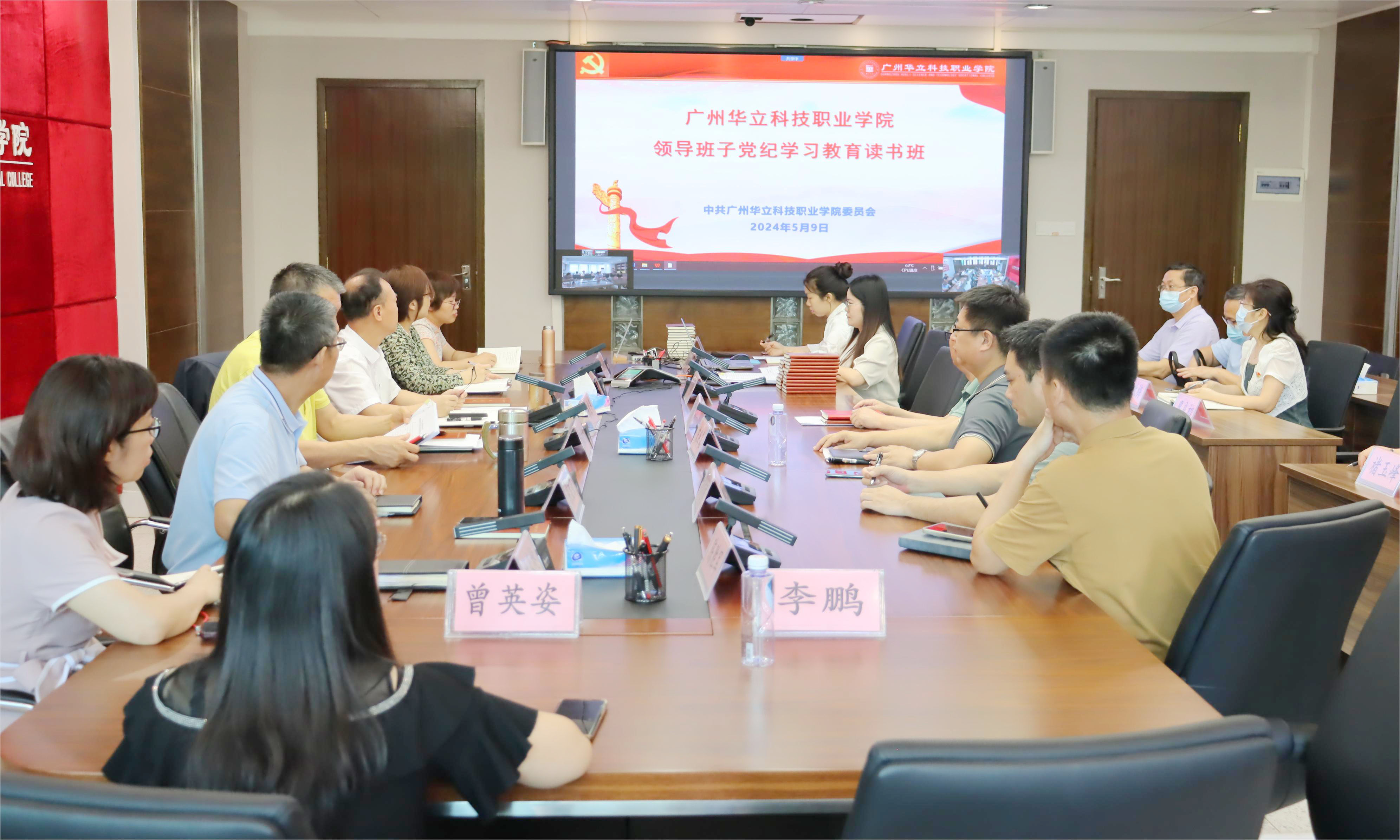 5月9日上午,廣州華立科技職業(yè)學(xué)院舉辦了領(lǐng)導(dǎo)班子黨紀(jì)學(xué)習(xí)教育讀書班開班,學(xué)校黨委書記陳良聲以《強(qiáng)化遵守紀(jì)律自覺,做到忠誠干凈擔(dān)當(dāng)》為題講開班第一課。陳德清校長及其他校領(lǐng)導(dǎo)、校黨委委員、紀(jì)委委員、黨委各部門負(fù)責(zé)人、各基層黨組織負(fù)責(zé)人出席,云浮校區(qū)的相關(guān)領(lǐng)導(dǎo)通過視頻連線參加。