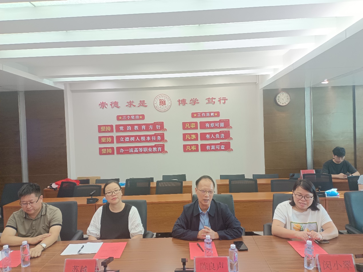 陳良聲書記對(duì)省信息安全測(cè)評(píng)中心和正佳企業(yè)集團(tuán)一行的到來表示歡迎,并從學(xué)校專業(yè)建設(shè)、教學(xué)優(yōu)勢(shì)、教學(xué)科研資源平臺(tái)、學(xué)生實(shí)習(xí)就業(yè)等方面做了詳細(xì)介紹。陳書記希望校政企三方共同努力,在人才培養(yǎng)和實(shí)習(xí)就業(yè)方面深入合作,做出特色和亮點(diǎn)。
