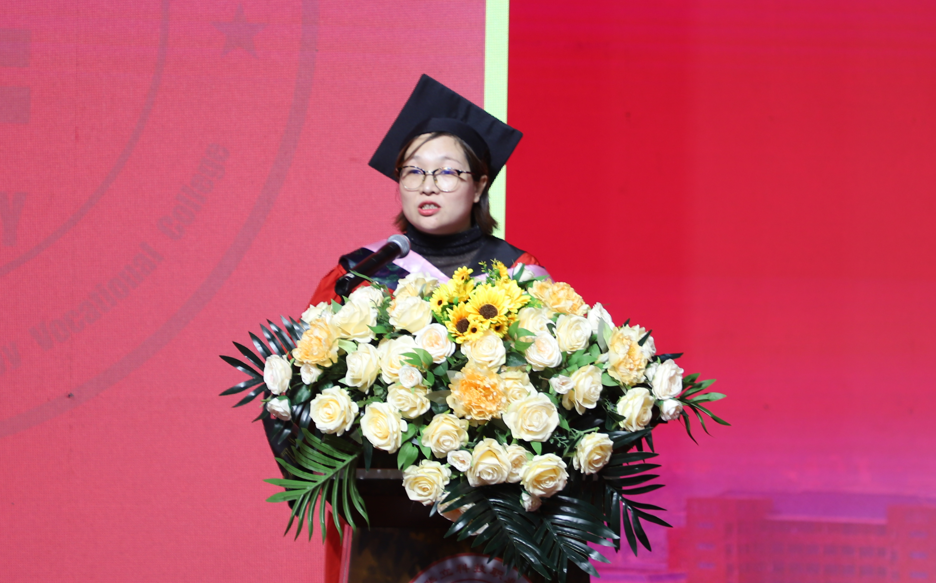 典禮上,易健民校長(zhǎng)用情真意切的致辭表達(dá)了對(duì)2024屆畢業(yè)生的熱烈祝賀和深情祝福。在即將離開(kāi)校園,開(kāi)啟嶄新的人生之旅之際,易校長(zhǎng)對(duì)畢業(yè)生提出了三點(diǎn)希望,一是要明確新的航向,實(shí)現(xiàn)自我價(jià)值。踏進(jìn)社會(huì)后,站在新的起點(diǎn),要主動(dòng)將個(gè)人理想融入國(guó)家發(fā)展藍(lán)圖,同頻共振,同聲相應(yīng),爭(zhēng)做“有理想、敢擔(dān)當(dāng)、能吃苦、肯奮斗”的時(shí)代好青年,實(shí)現(xiàn)自我價(jià)值。二是要繼續(xù)學(xué)習(xí),堅(jiān)持終身學(xué)習(xí)。學(xué)習(xí)專(zhuān)業(yè)技術(shù)知識(shí),打牢理論基礎(chǔ);學(xué)習(xí)為人處世,正確面對(duì)順境與困難,妥善處理人際關(guān)系;學(xué)習(xí)傳統(tǒng)文化,提高人文素養(yǎng),豐富精神世界。三是要勇于實(shí)踐,繼續(xù)提升技能。在今后的職業(yè)生涯中,要立志做新時(shí)代的大國(guó)工匠、勞動(dòng)模范,立足本職、愛(ài)崗敬業(yè)、勇于實(shí)踐、勤學(xué)苦練,虛心向能工巧匠學(xué)習(xí),掌握技術(shù)要領(lǐng),傳承“秘籍”“竅門(mén)”。期待畢業(yè)生們勇敢的放飛青春的夢(mèng)想,在新征途上展翅高飛。