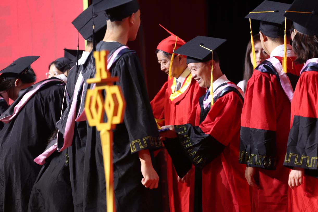 黨委書(shū)記陳良聲宣讀了優(yōu)秀畢業(yè)生表彰文件,易健民校長(zhǎng)和陳良聲書(shū)記為優(yōu)秀畢業(yè)生頒發(fā)了證書(shū)并合影留念。