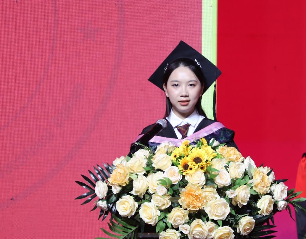 經(jīng)管學(xué)院的黃瑩瑩同學(xué)代表2024屆全體畢業(yè)生進(jìn)行發(fā)言,對(duì)關(guān)切師生的領(lǐng)導(dǎo),和認(rèn)真教學(xué)、辛勤教課的所有老師們,表示了衷心的感謝和崇高的敬意!表示自己一定會(huì)努力成為有理想、有道德、有文化、守紀(jì)律的合格畢業(yè)生,給社會(huì)、給學(xué)校、給家人交一份滿(mǎn)意的答卷。最后,送上了誠(chéng)摯的祝福,衷心祝愿母校蓬勃發(fā)展,再譜華章,祝愿老師們碩果累累、桃李滿(mǎn)園,祝愿同學(xué)們一帆風(fēng)順,前程似錦!