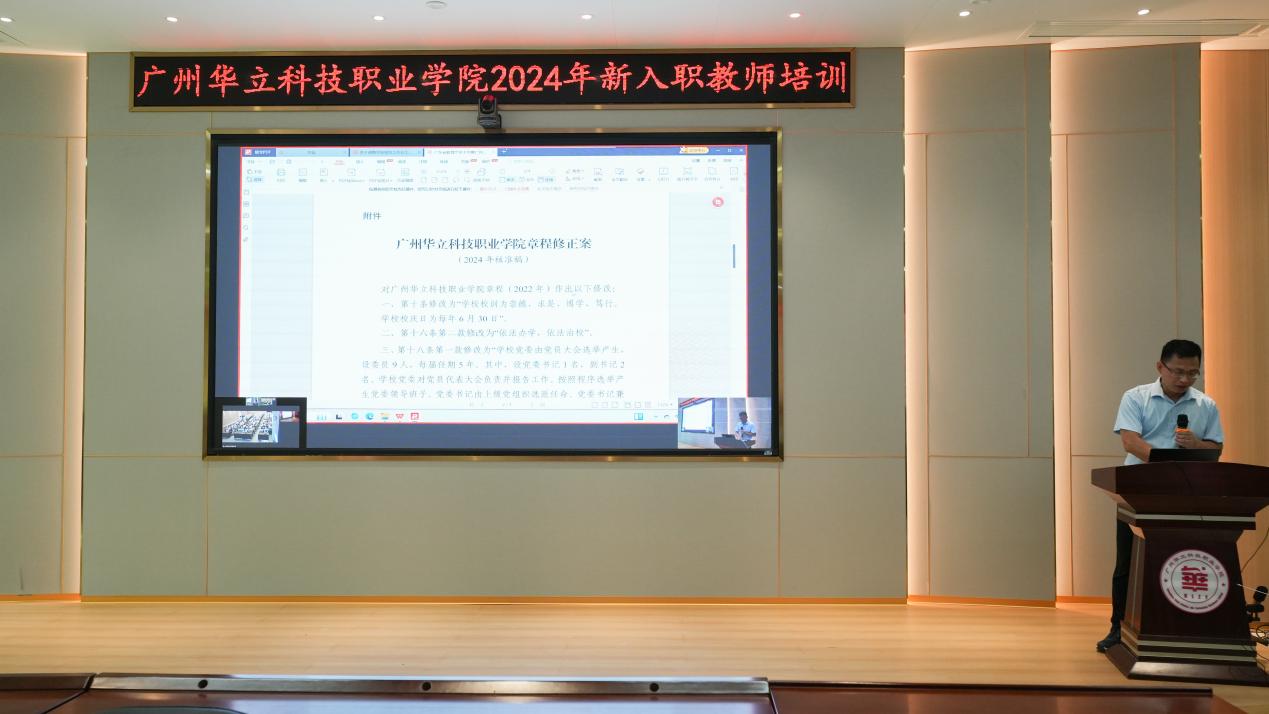 接著,學(xué)校辦公室主任李鵬對(duì)學(xué)校的基本情況作了全面簡(jiǎn)介,包括學(xué)校的發(fā)展簡(jiǎn)史、職能部門設(shè)置、二級(jí)學(xué)院情況、學(xué)校章程等,重點(diǎn)介紹了學(xué)校的辦學(xué)理念、發(fā)展目標(biāo)和學(xué)習(xí)了學(xué)校章程,希望新入職教師了解華立文化,盡快融入華立大家庭。