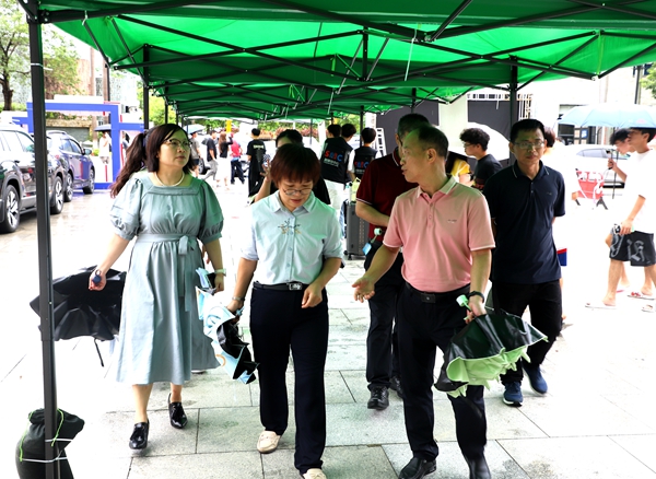 走訪中,校領導充分肯定了大家在酷熱中堅守崗位、確保學生入學順暢有序的工作狀態(tài),以及周到細致的志愿服務精神,并表達了真誠的感謝。