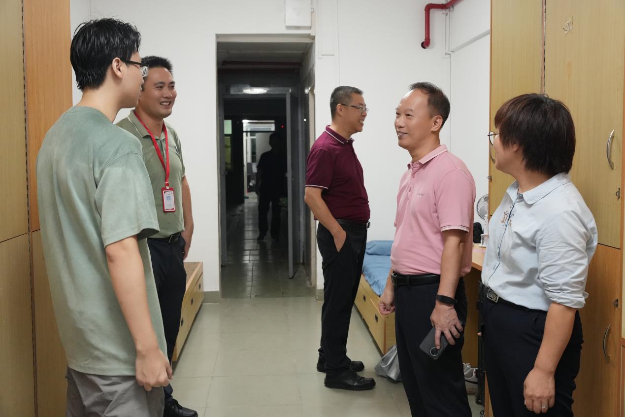新學期伊始,為了解新生報到和入住情況,傳達學校對廣大學子的關懷與問候,9月6日上午,學校黨委書記陳良聲、常務副校長馬俊、副校長陳顯強,王洪艷、校長助理葉春桃及相關職能部門負責人走訪校園,深入學生寢室,走訪慰問學生,并就相關工作提出指導意見,確保新學期各項工作平穩(wěn)有序進行。