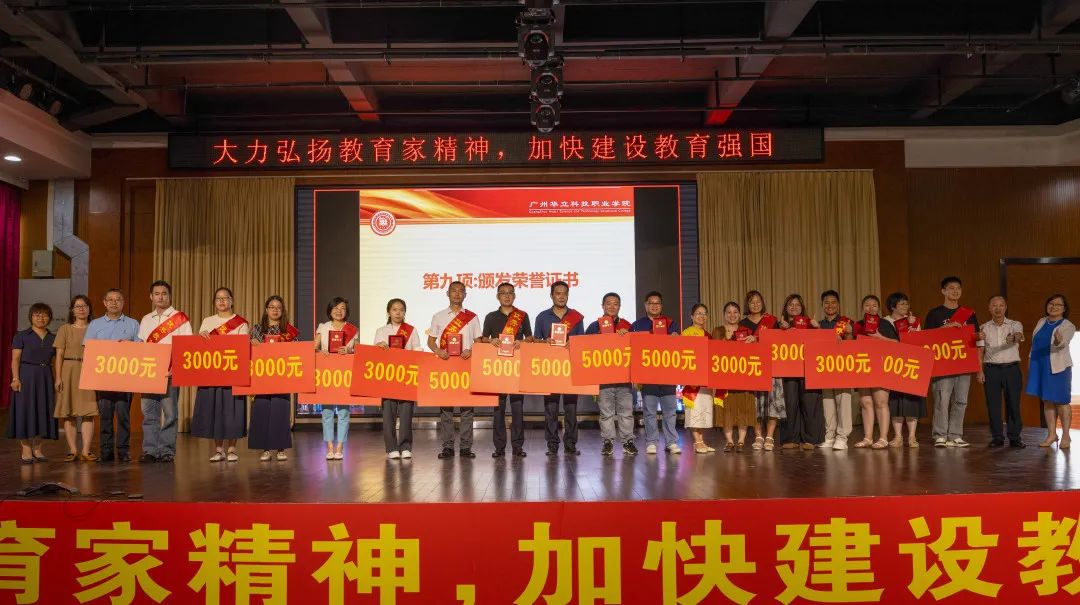 悉心育桃李,無私鑄師魂。為激發(fā)廣大教師向身邊榜樣學(xué)習(xí)、向先進(jìn)典型看齊,大會隆重表彰了在教學(xué)科研、學(xué)生工作、招生就業(yè)等方面作出突出貢獻(xiàn)的先進(jìn)集體和個人,共發(fā)放獎金120萬元!